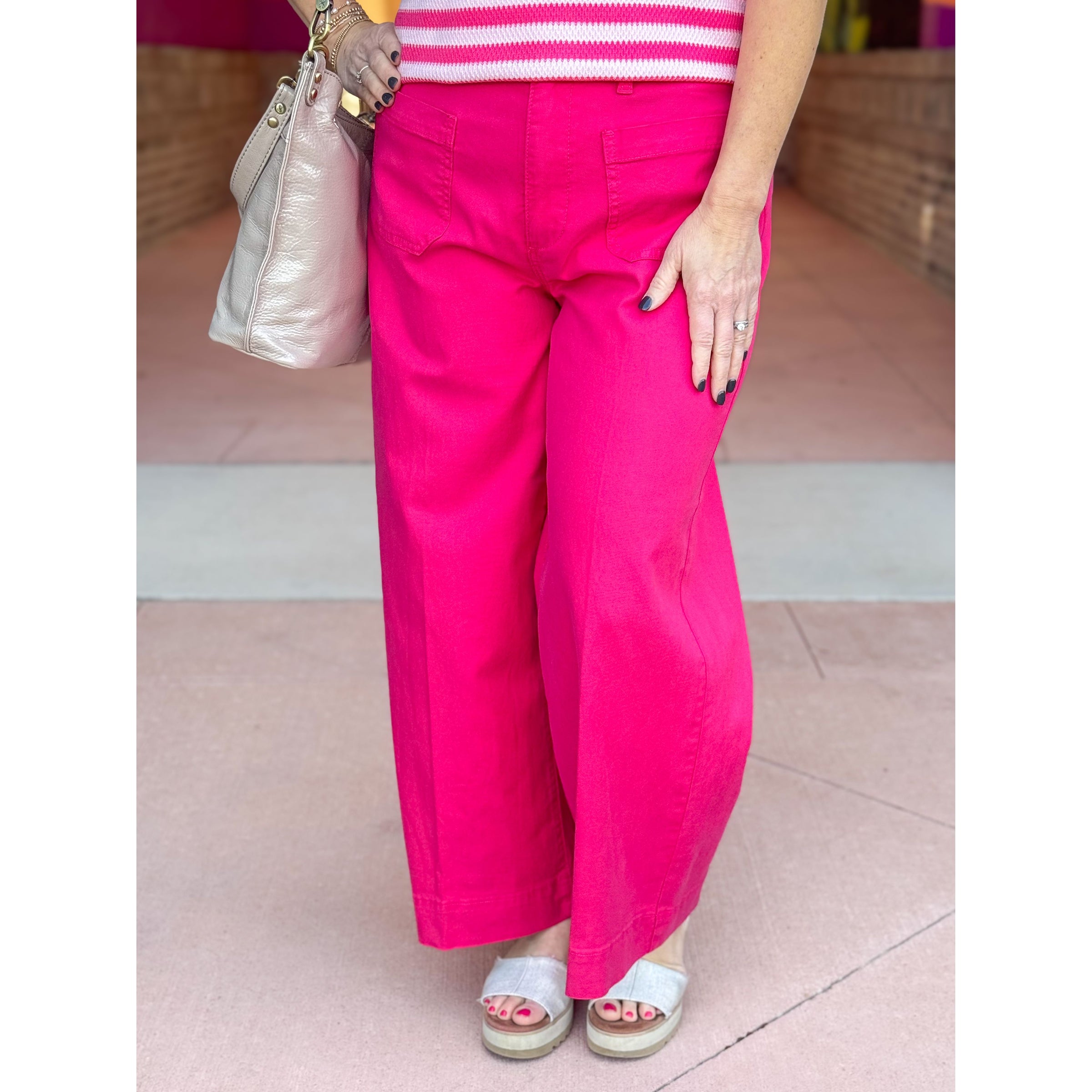 Liverpool Los Angeles Crop Wide Leg With Patch Pockets Jeans 27" Ins - Diva Pink
