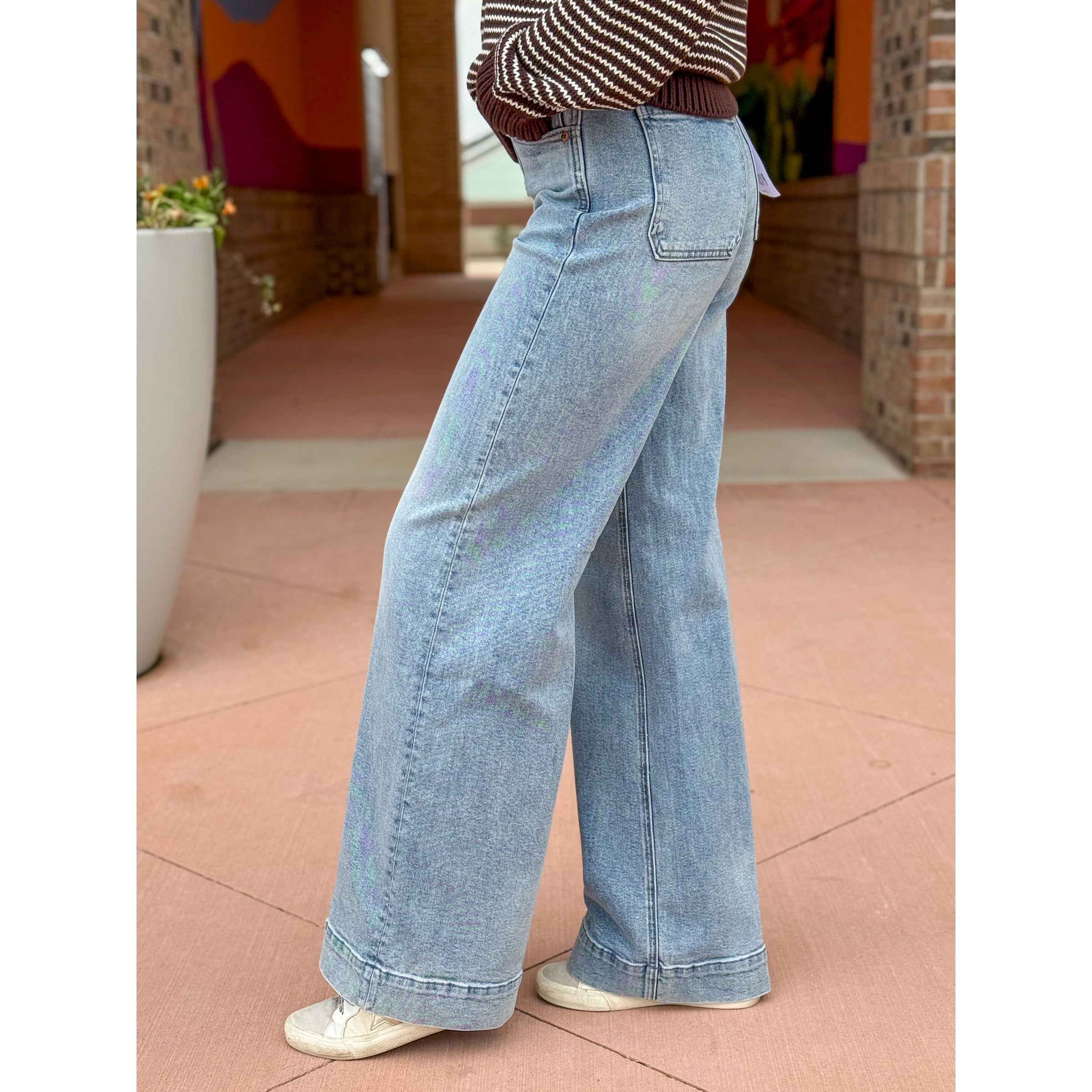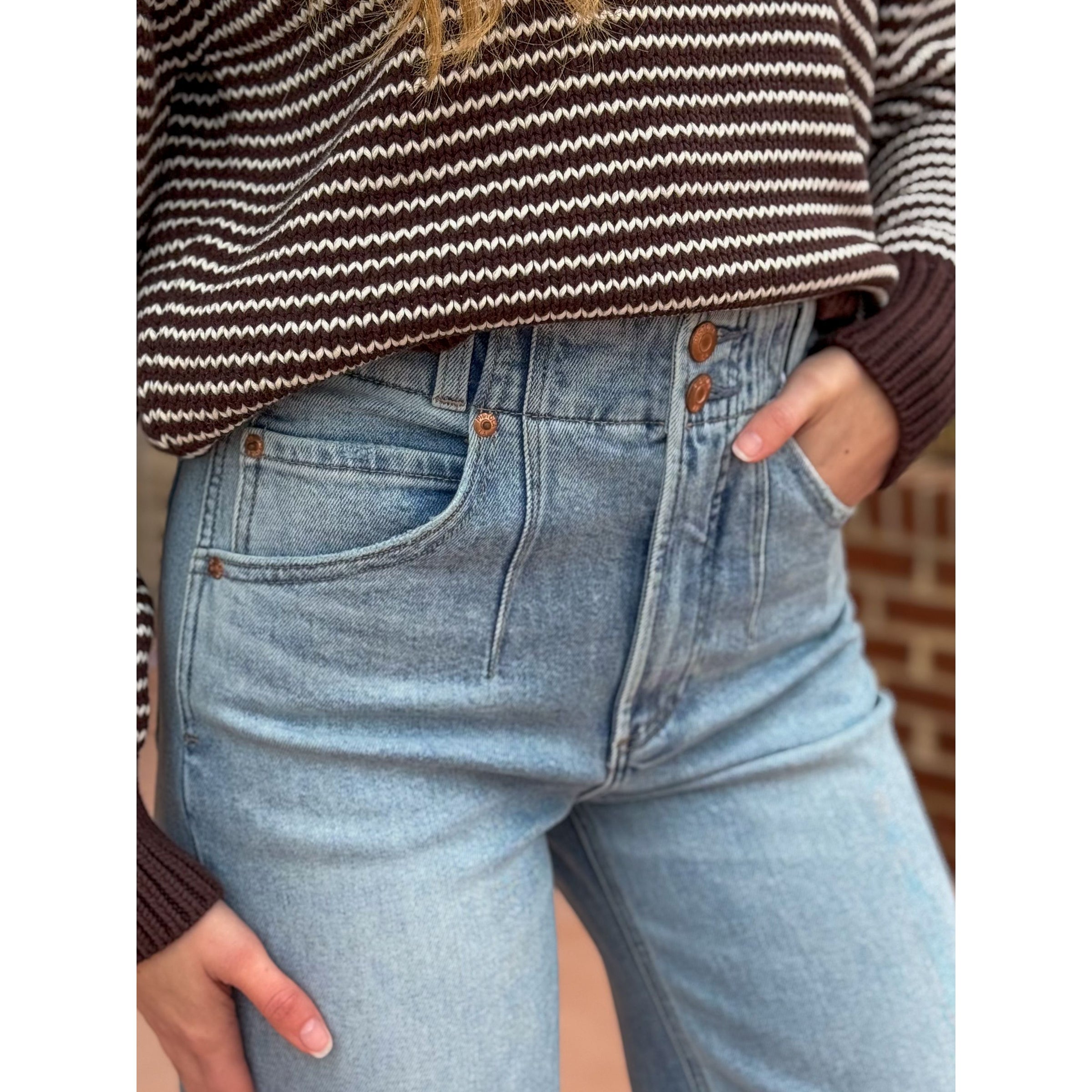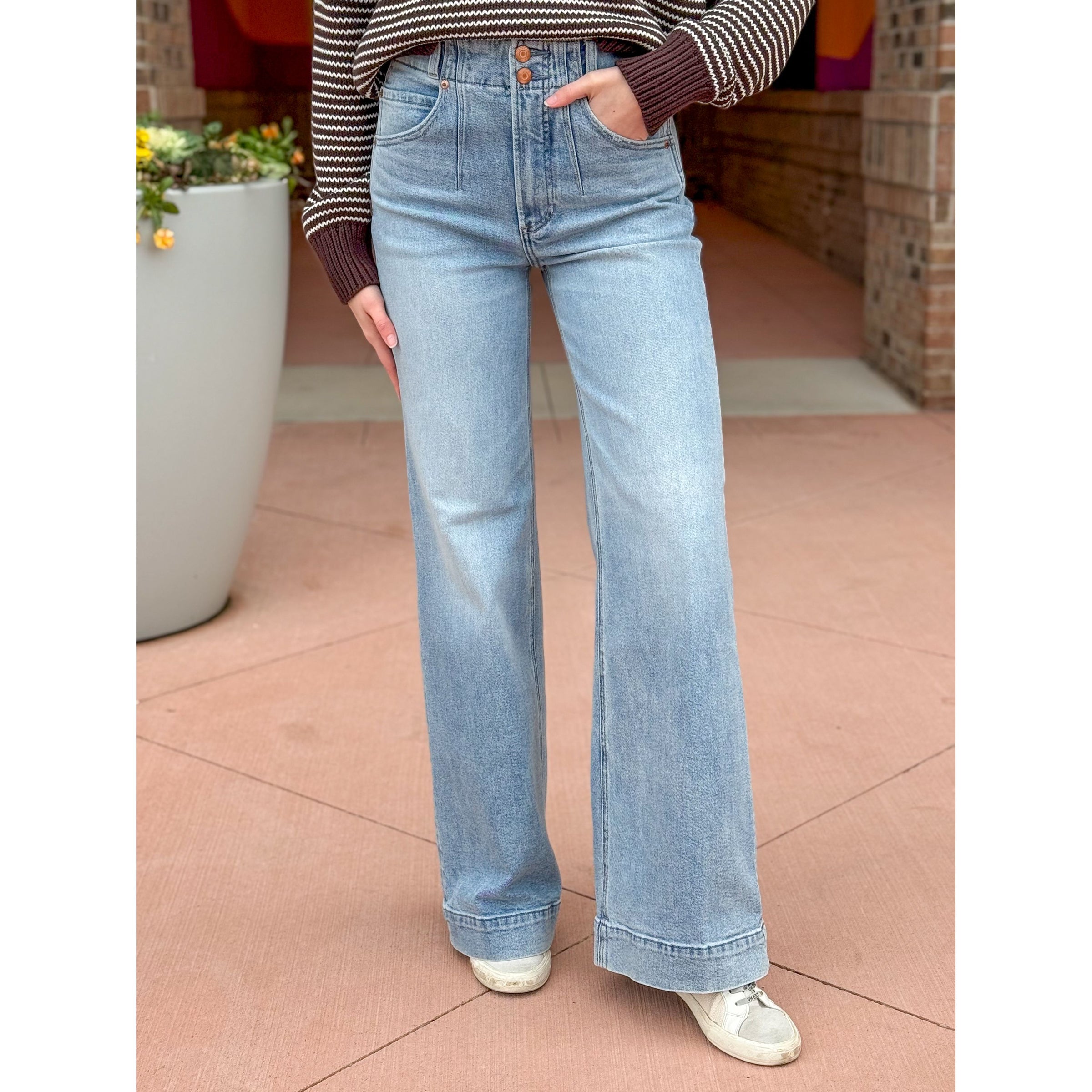 The ultra wide leg with a twist. Lana delivers commanding presence with a high rise and ultra wide leg silhouette, finished with a full-length 33" inseam. The double button closure adds modern detail while the ultra wide opening brings contemporary proportions to any look. Crafted from comfort stretch denim that provides structured shape with the perfect amount of movement. Terrace brings effortless sophistication with its light wash and subtle fading that feels authentically lived-in.