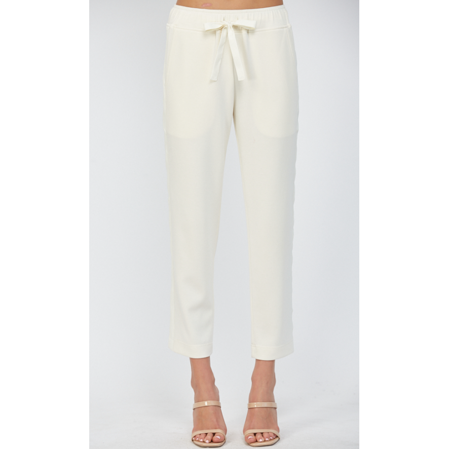 Slip into ultimate comfort with the Stanton Contrast Satin Trim Detail Lounge Pants in French Vanilla. These super soft pants feature a playful drawstring waistband and sleek straight leg design, making them perfect for weekend errands or cozy days at home. Pair them with the matching Sadie Contrast Satin Trim Sweatshirt for a stylish, laid-back look that’s as fun as it is comfy.