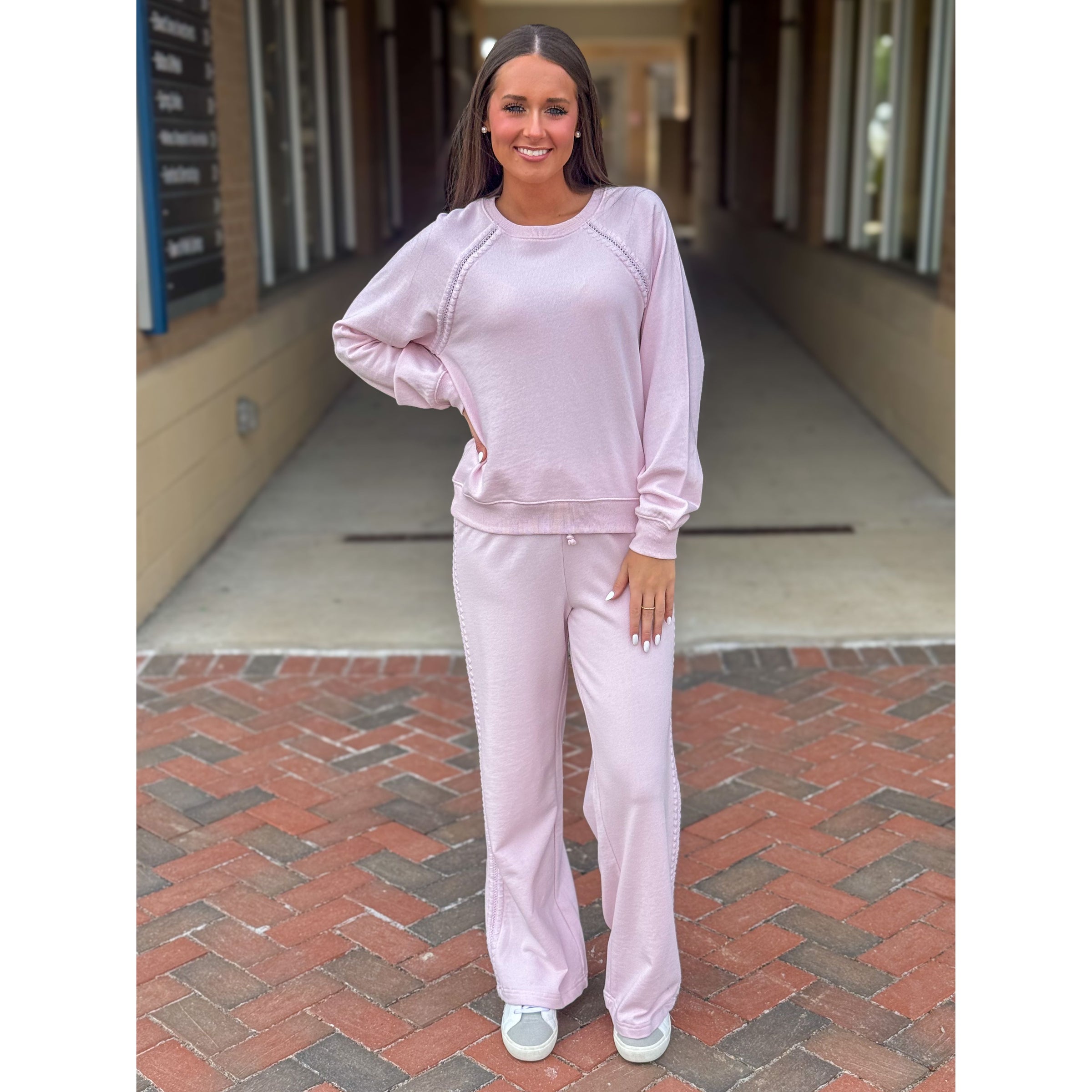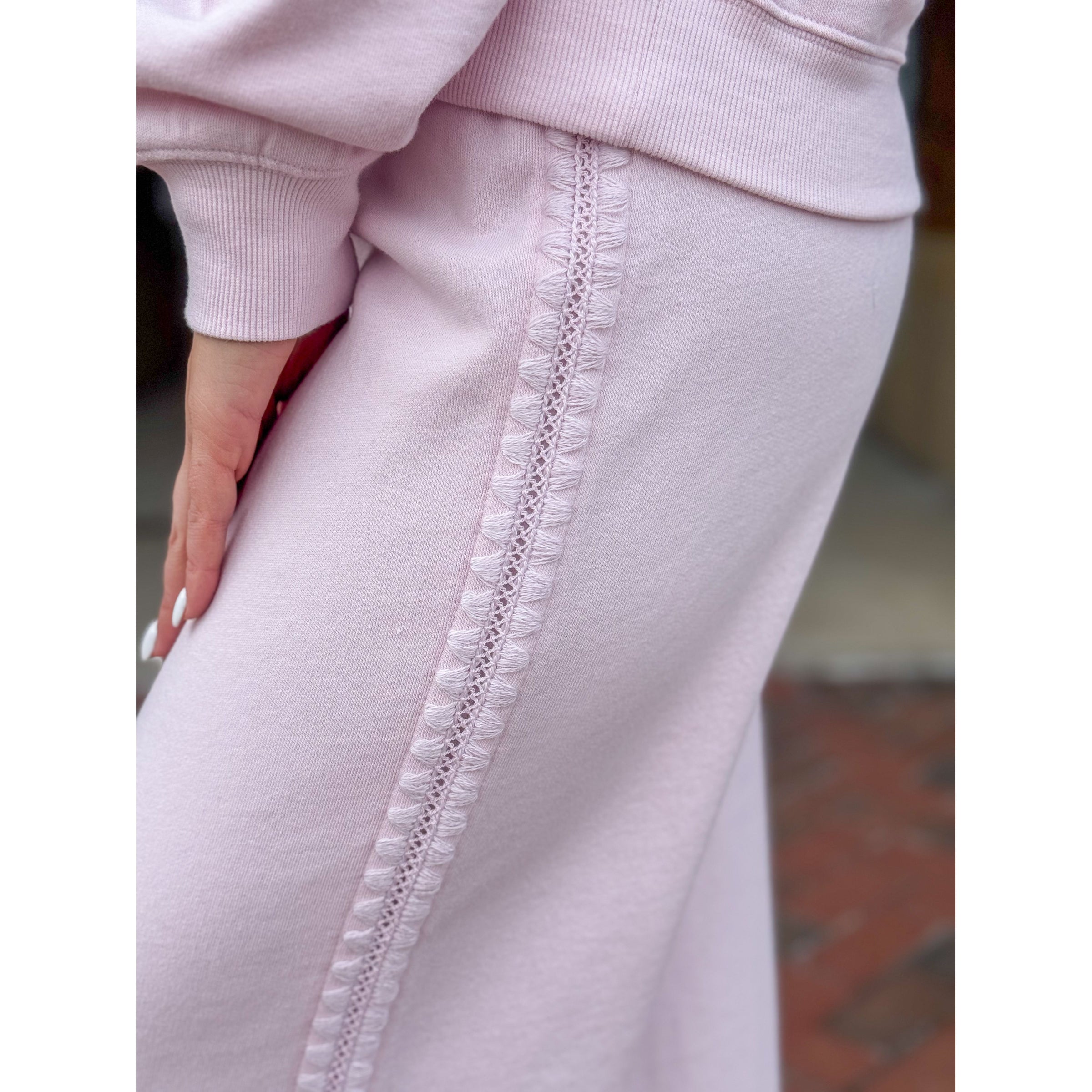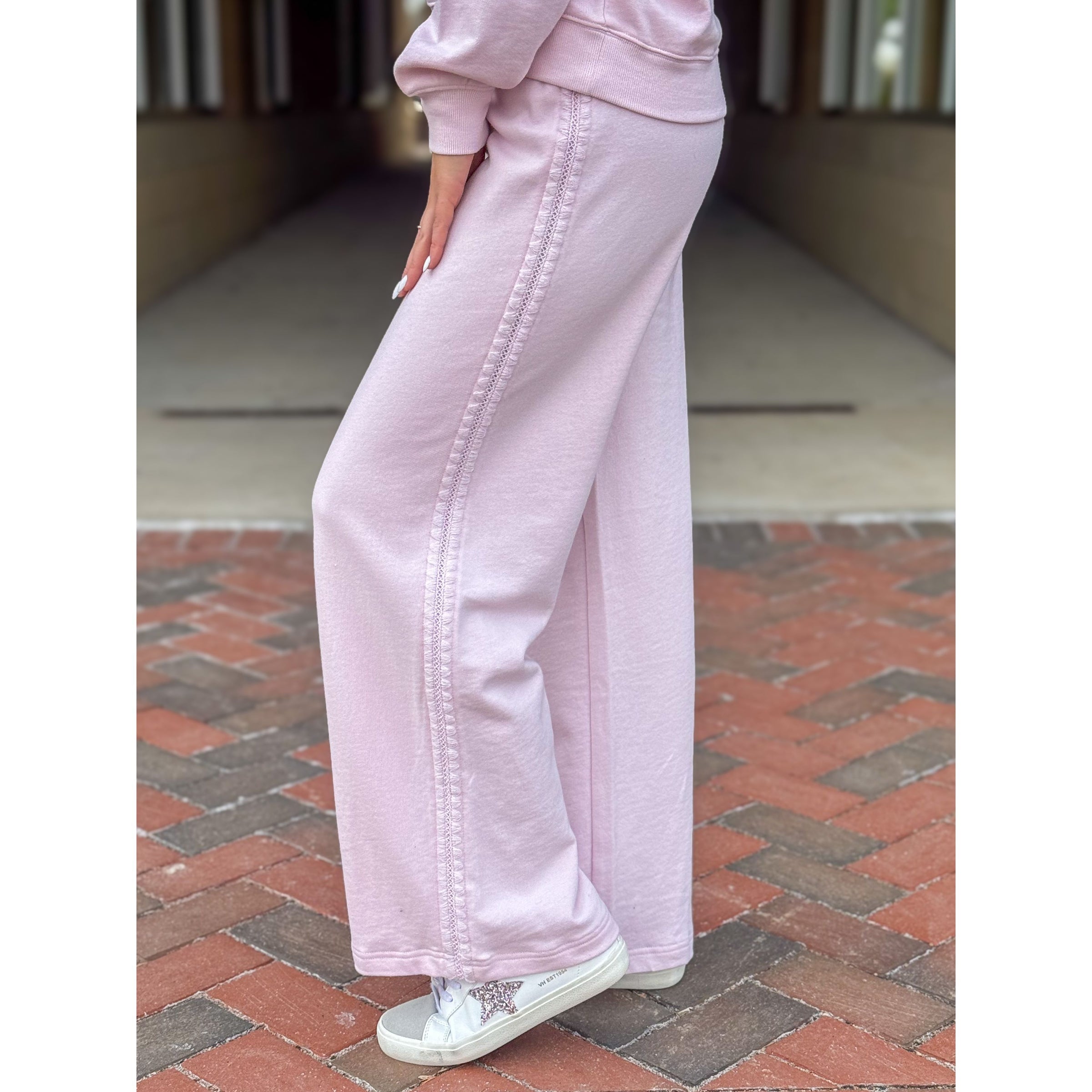 Easygoing with a twist. These Z Supply cotton French terry wide-legs feature a comfy drawstring waist and delicate crochet trim at the sides for a soft-meets-feminine moment. Don't miss the chance to pair these with the Z Supply All Around French Terry Sweatshirt, also in washed pink.