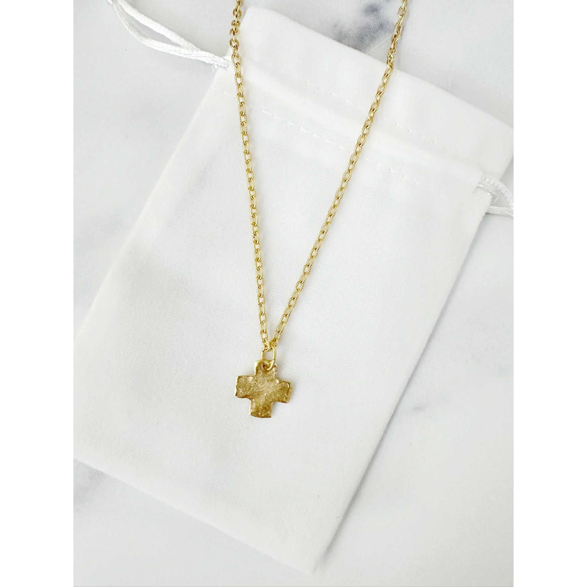 Small Cross on Tiny Chain Necklace 16 inches with a 3 inch Extender Chain Handcast 24Kt Gold Plated