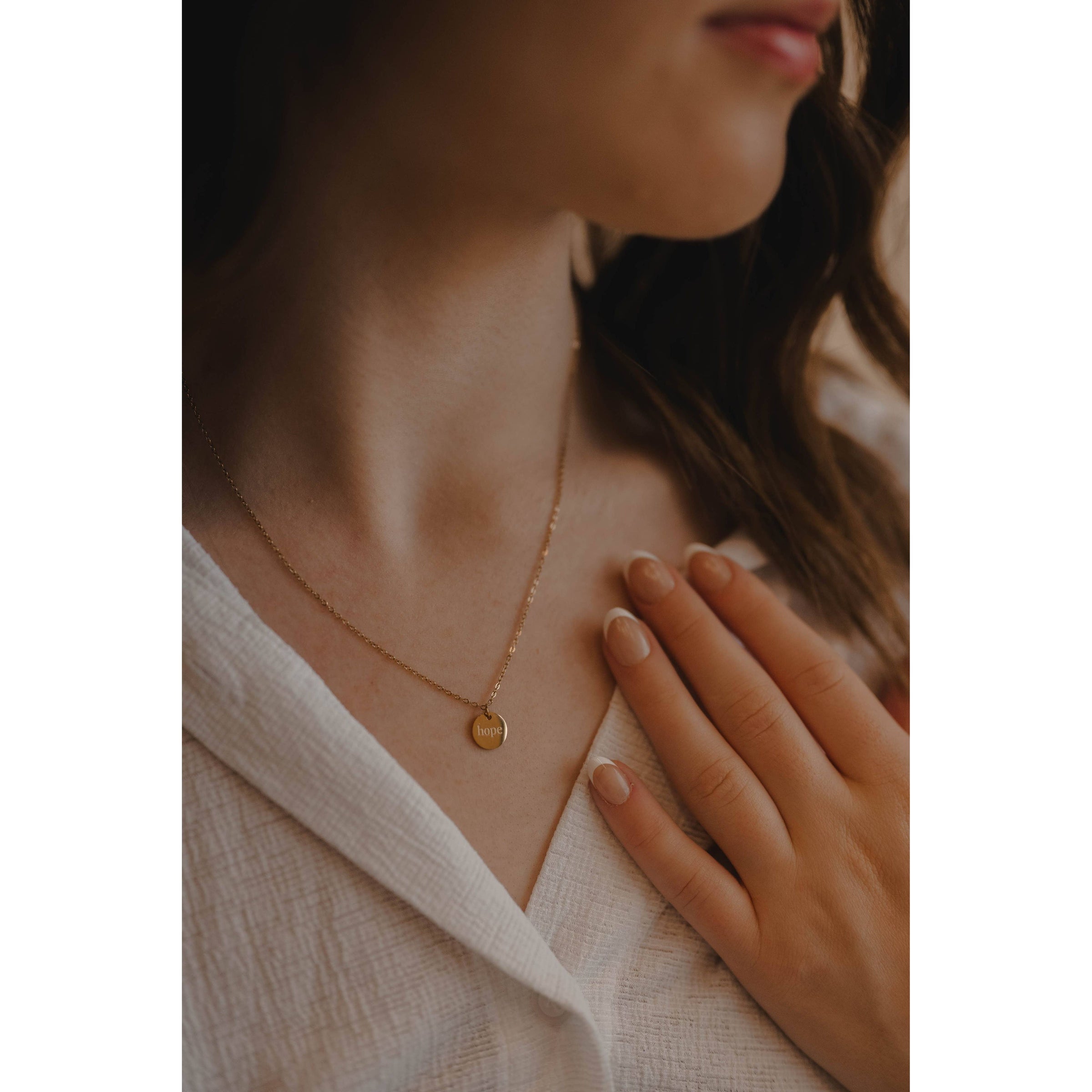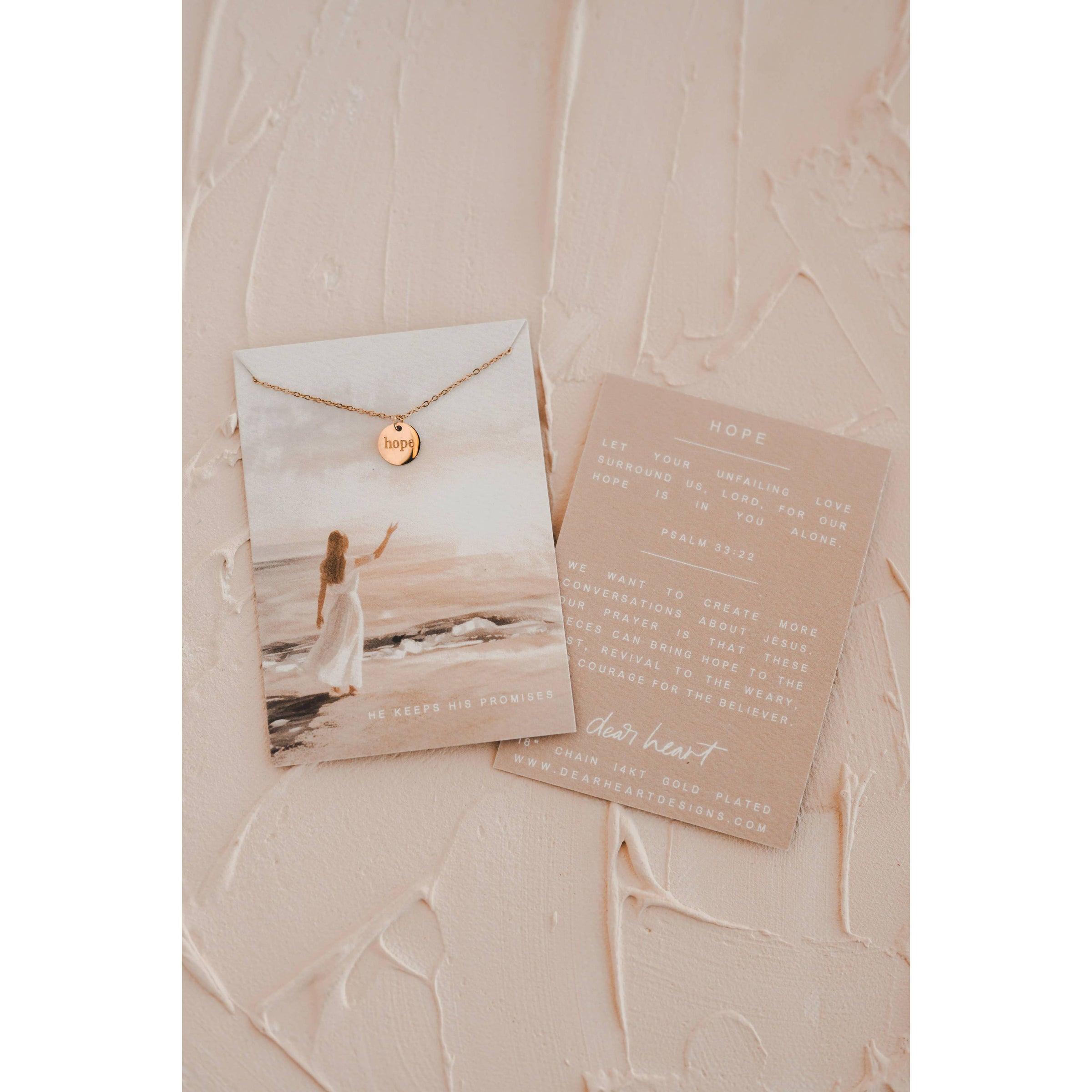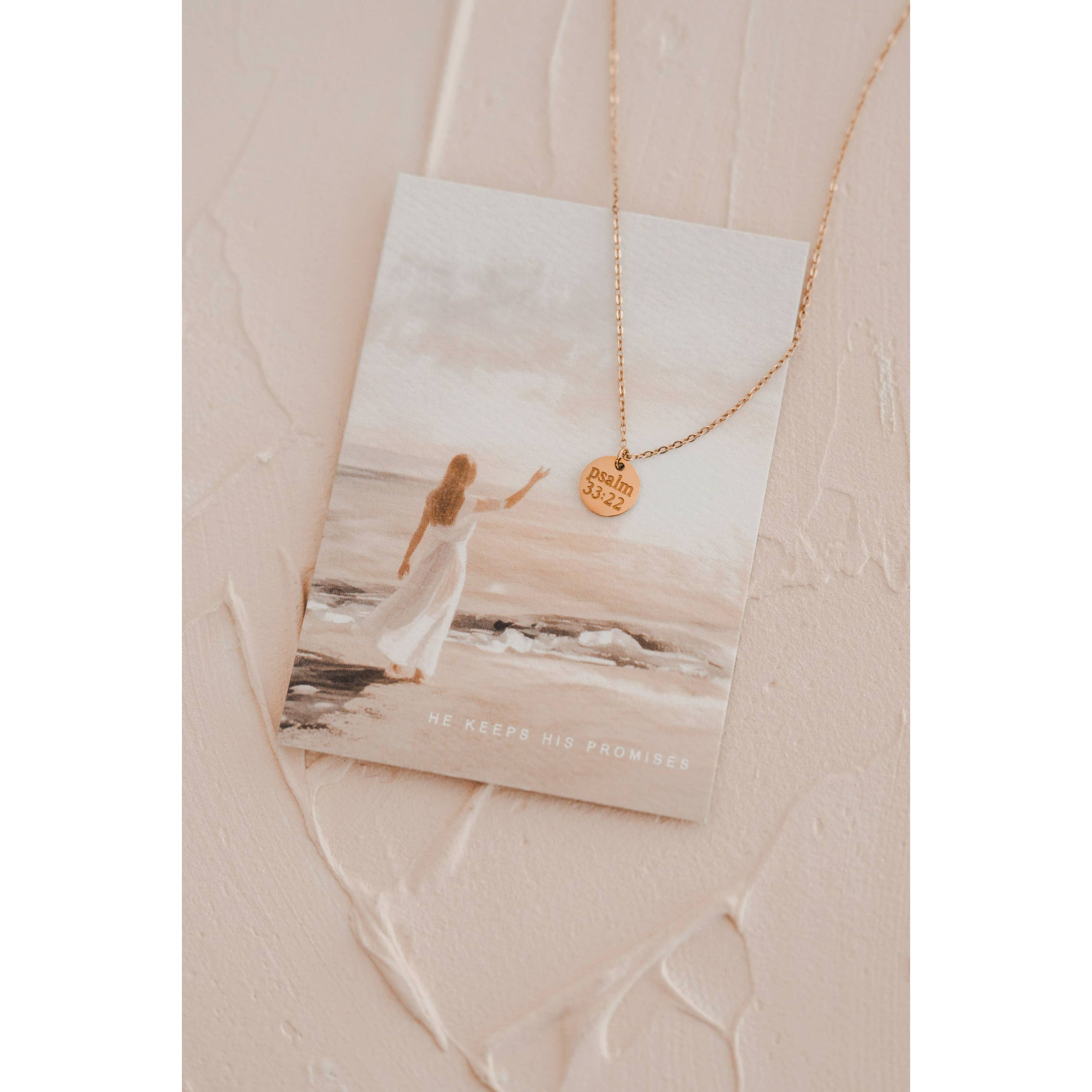 Details: "Hope" on one side and "Psalm 33:22" on other 14kt Gold Plated Tarnish + Water Resistant Hypoallergenic 16-18"