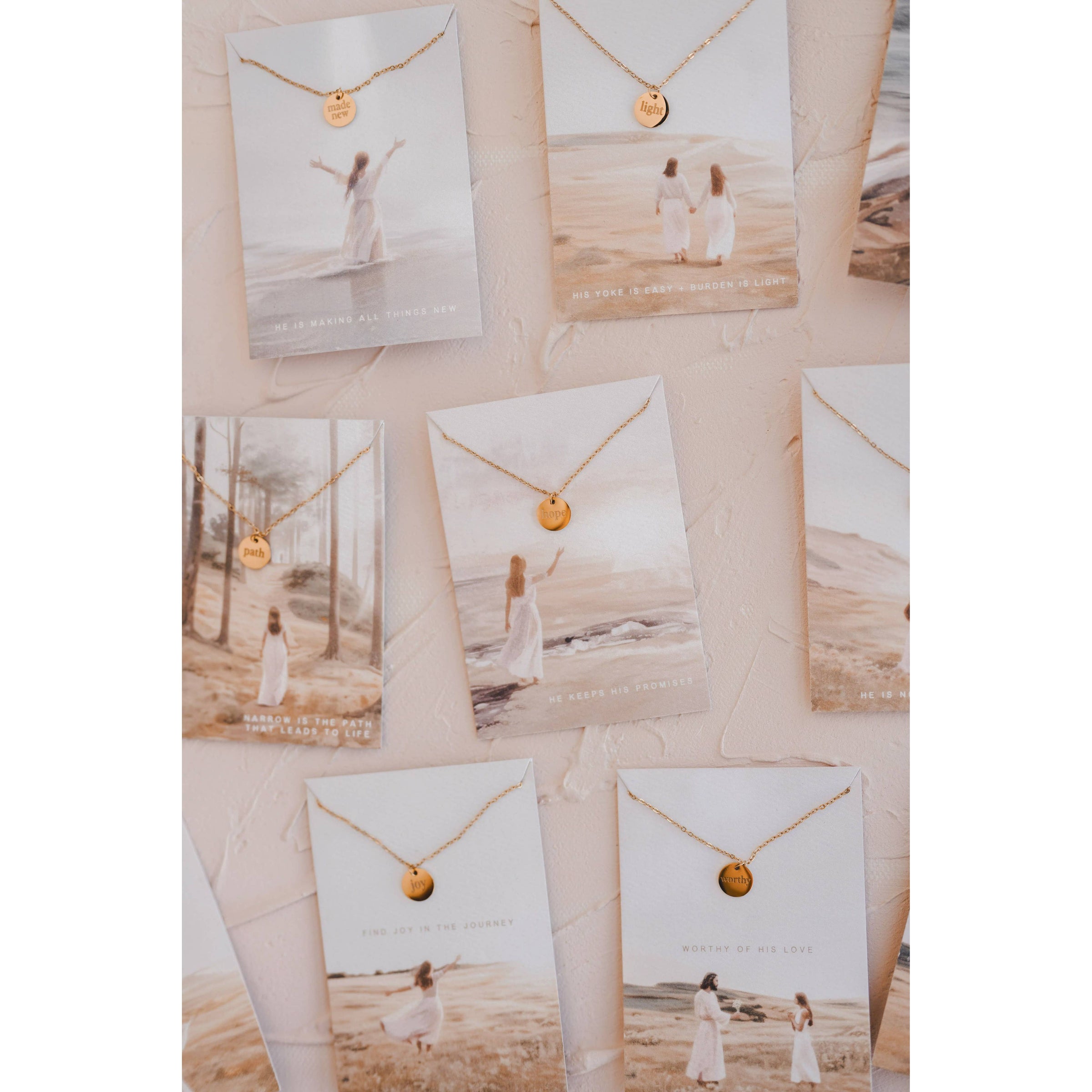 Displayed on a textured card featuring beautiful artwork by Dear Heart Designs. Full verse reference included on the back of the card.