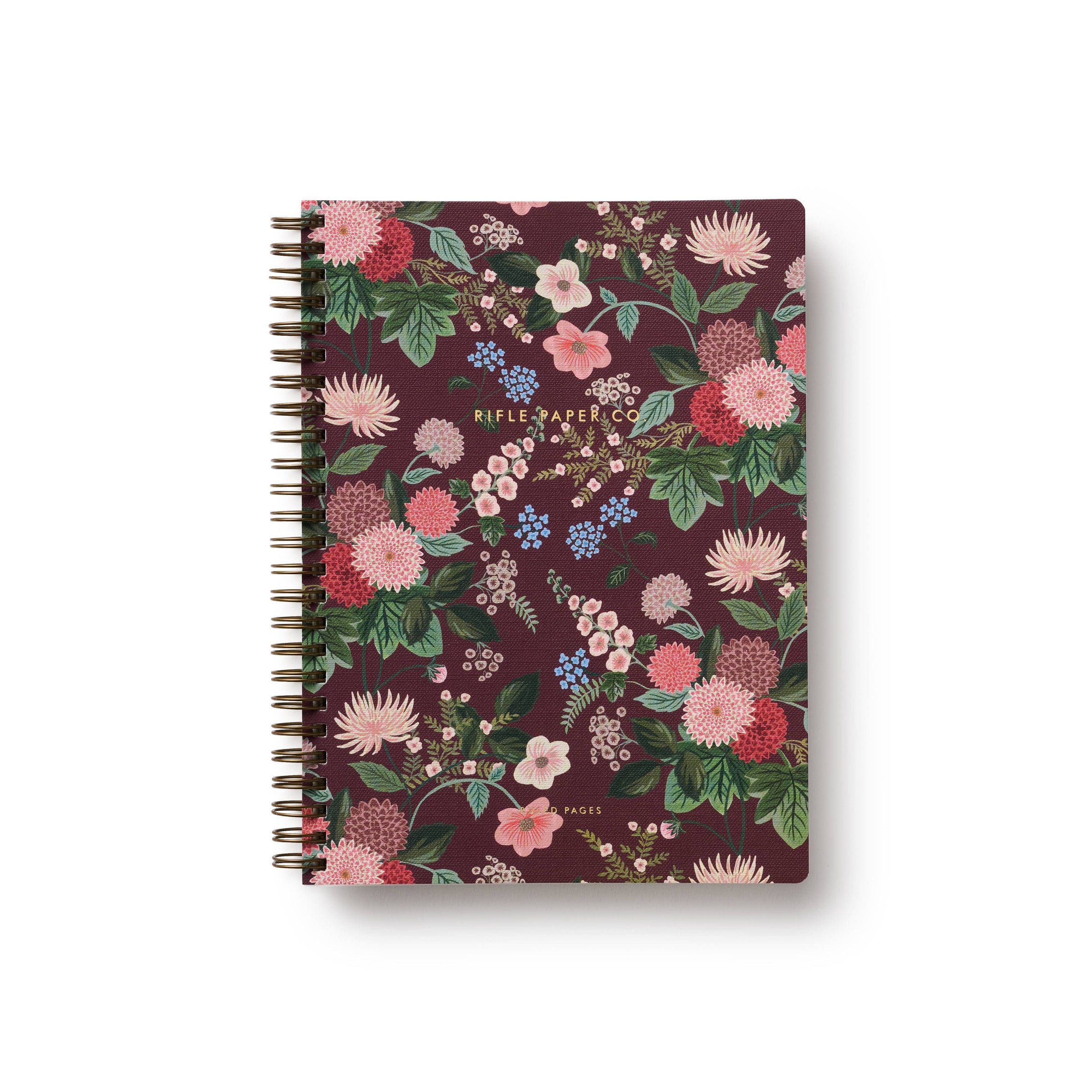 Printed on heavy-weight textured paper, this softcover spiral notebook features an illustrated cover with gold foil accents. The notebook has 150 ruled, perforated pages, a sturdy double-spiral binding, and pockets for extra storage.