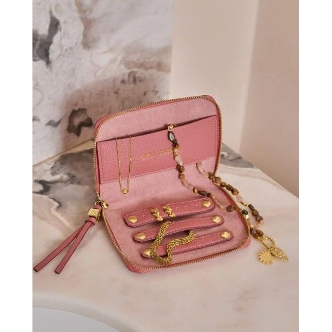 Keep your favorite treasures secure and tangle-free with this chic, Raspberry Pink travel organizer from Katie Loxton. Crafted from premium pebble vegan leather, it combines effortless style with a compact design for the ultimate on-the-go accessory.