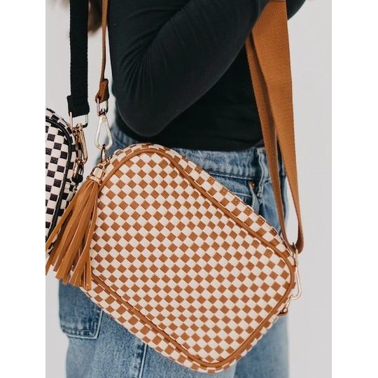 Woven Willow Camera Crossbody Bag - Checkered Brown