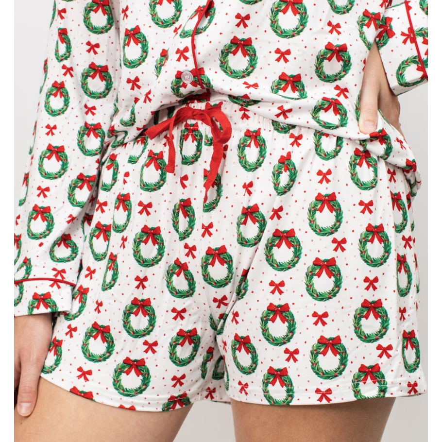 Clara Wreath Sleep Shorts - White/Red/Green
