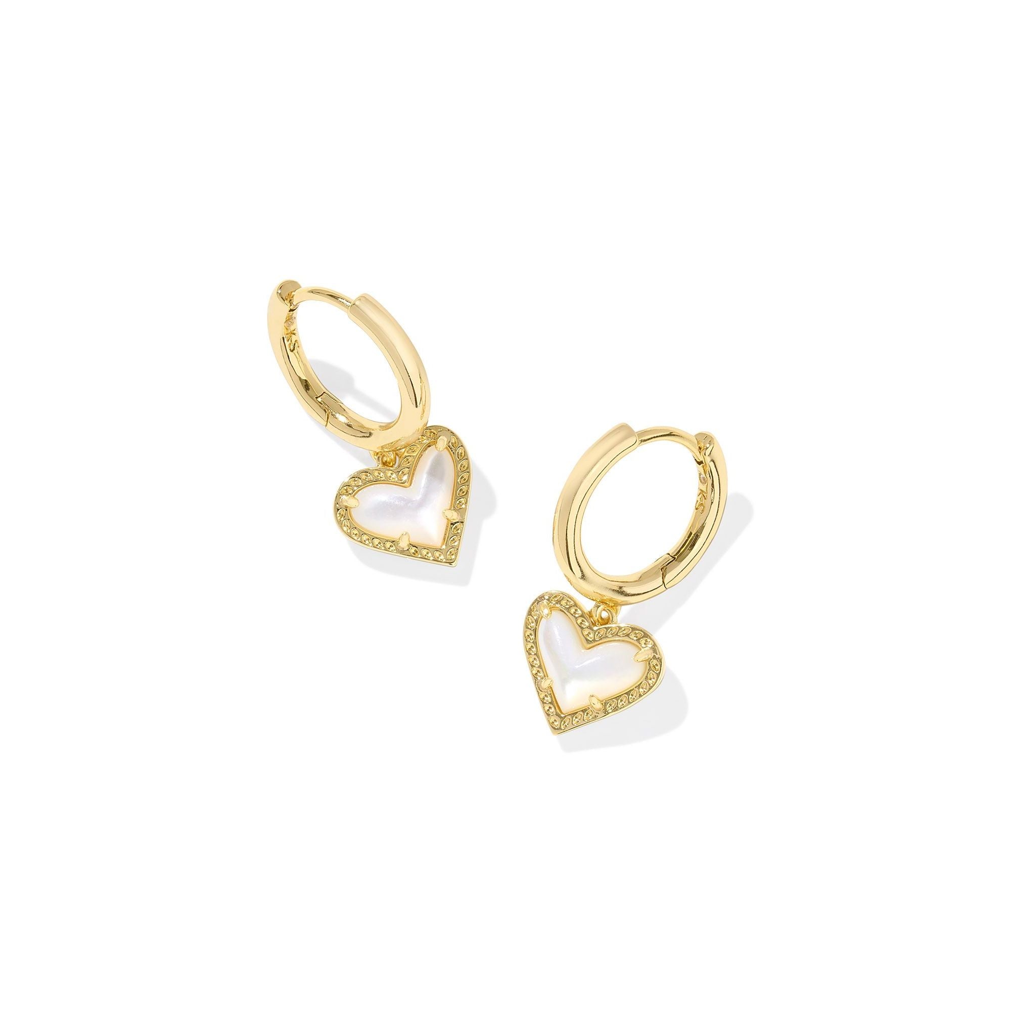 KENDRA SCOTT ARI HEART HUGGIE EARRINGS GOLD IVORY MOTHER OF PEARL