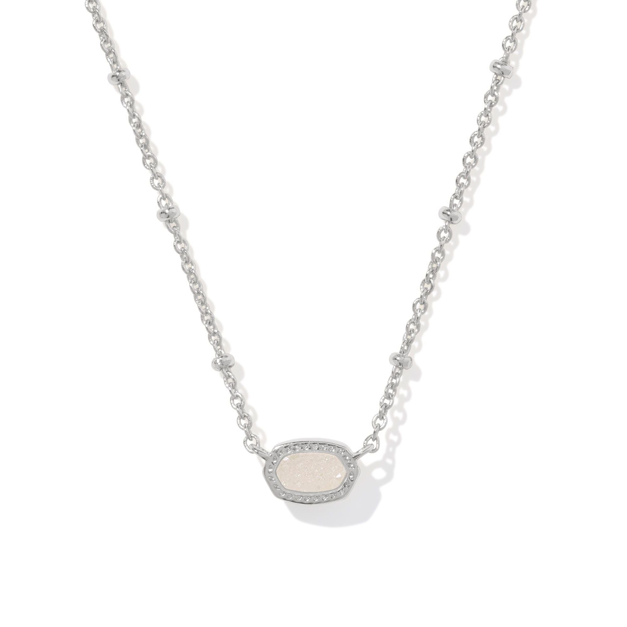 KENDRA SCOTT MINI ELISA SATELLITE SHORT PENDANT NECKLACE SILVER IRIDESCENT DRUSY