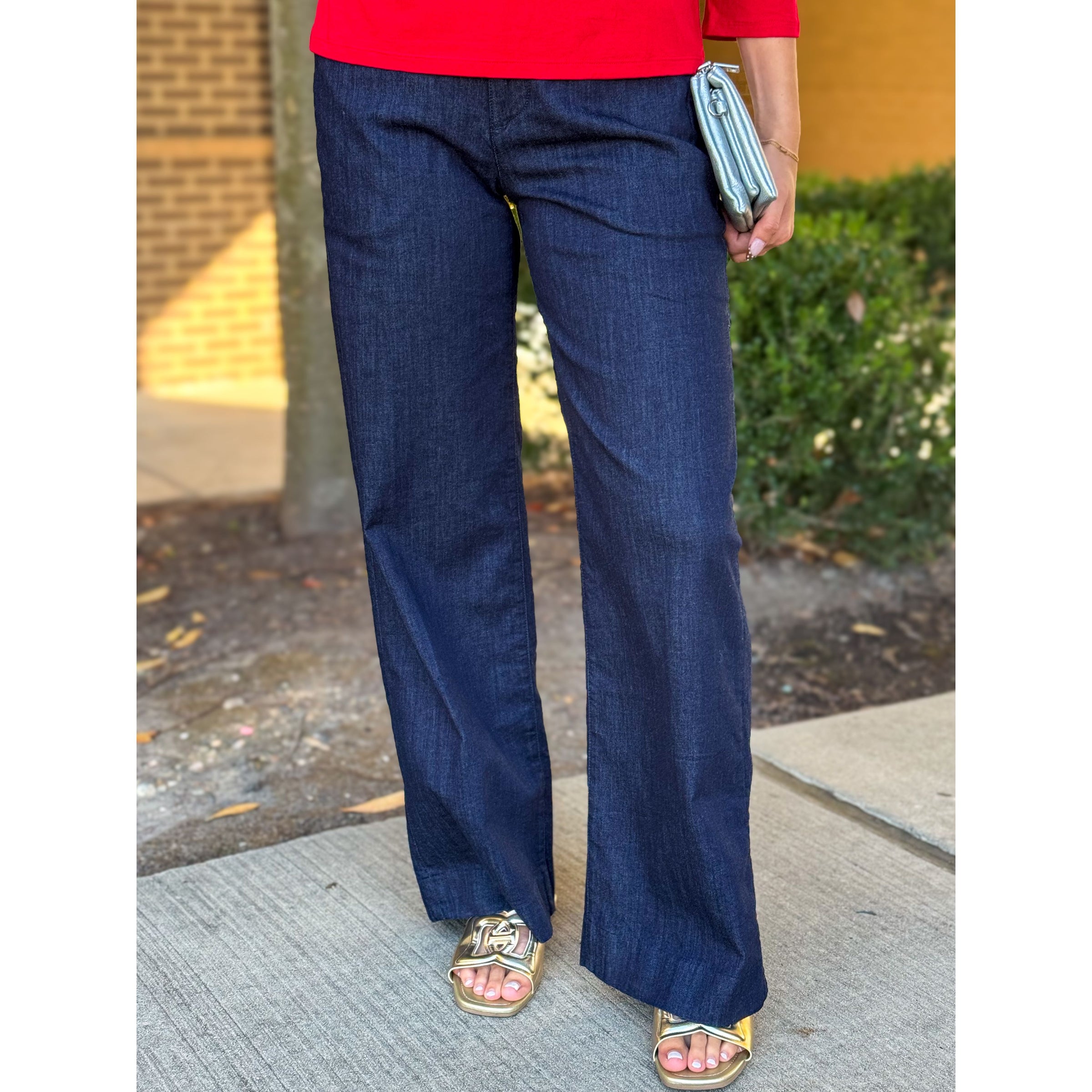 Say hello to the timeless Brandy pant in a rich dark denim hue in straight leg with a clean hem finish. Made from a premium blend of woven spandex in a flattering high rise fit for a sophisticated clean hem finish for unmatched comfort and flexibility. These versatile trouser pants feature front slant & back welt pockets in polished finishing.