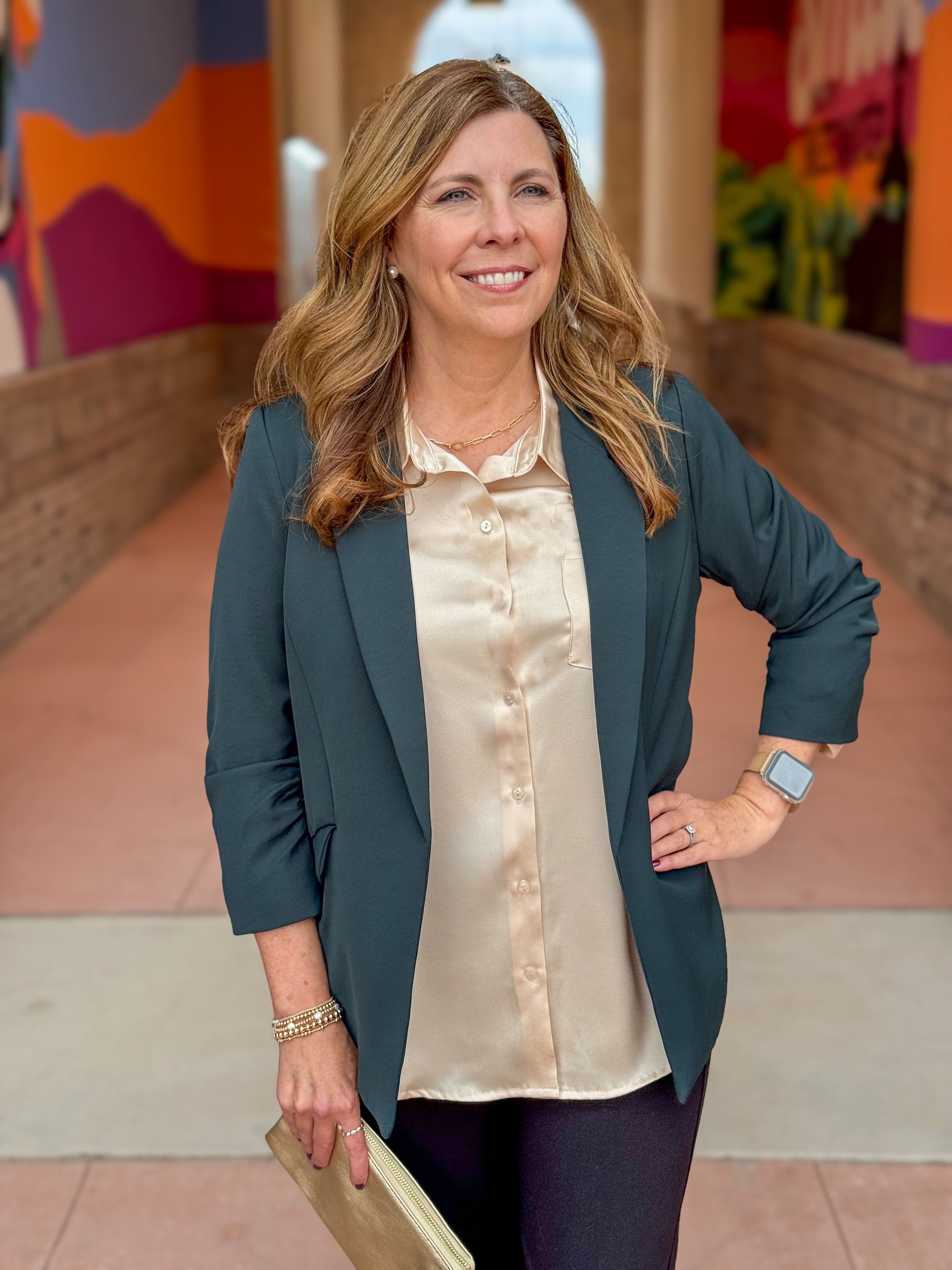 Felicia Recycled Shirred Sleeve Blazer - Forest Green