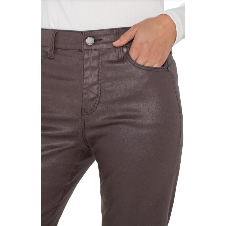 The Liverpool Los Angeles Kennedy High Rise Crop Straight Pant in a rich raisin tone features a coated finish that adds a refined, leather-like texture to classic stretch denim. With a flattering high-rise fit and clean straight leg, this pant offers effortless comfort and mobility. Perfectly polished for evening occasions yet relaxed enough for daily wear, it serves as a versatile and elegant statement piece in any wardrobe.