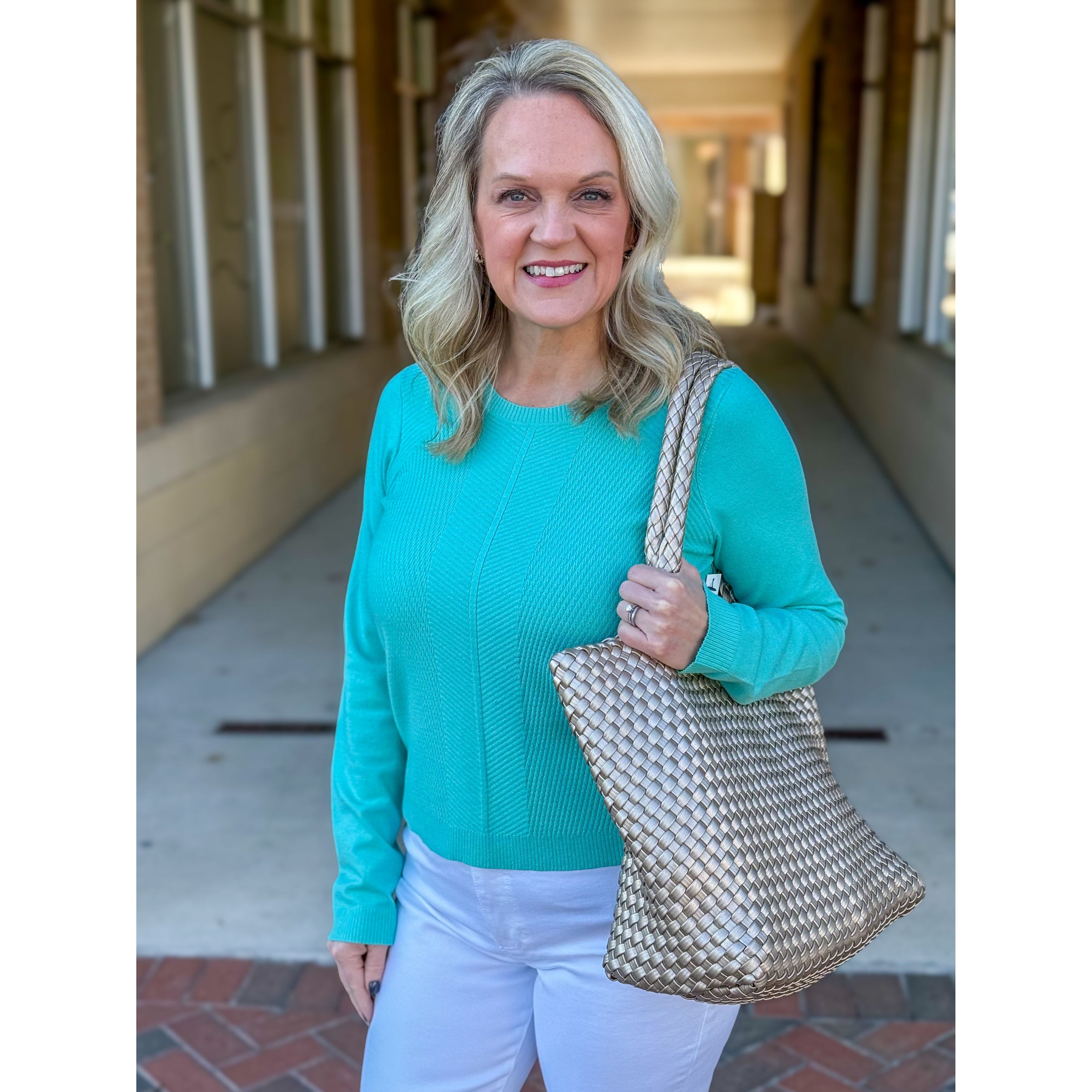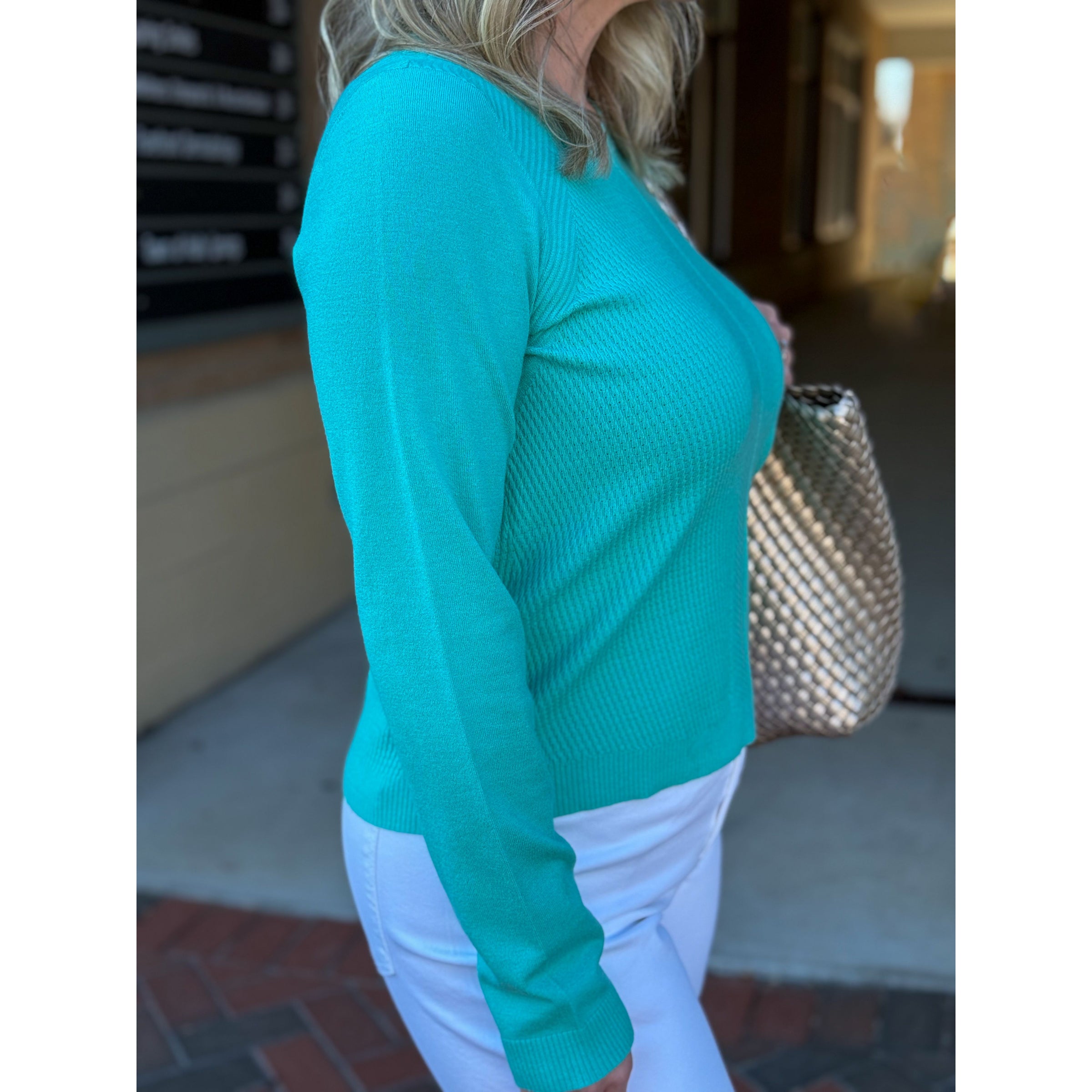 Liverpool Los Angeles Long Sleeve Crew Neck Sweater - Waterfall Teal