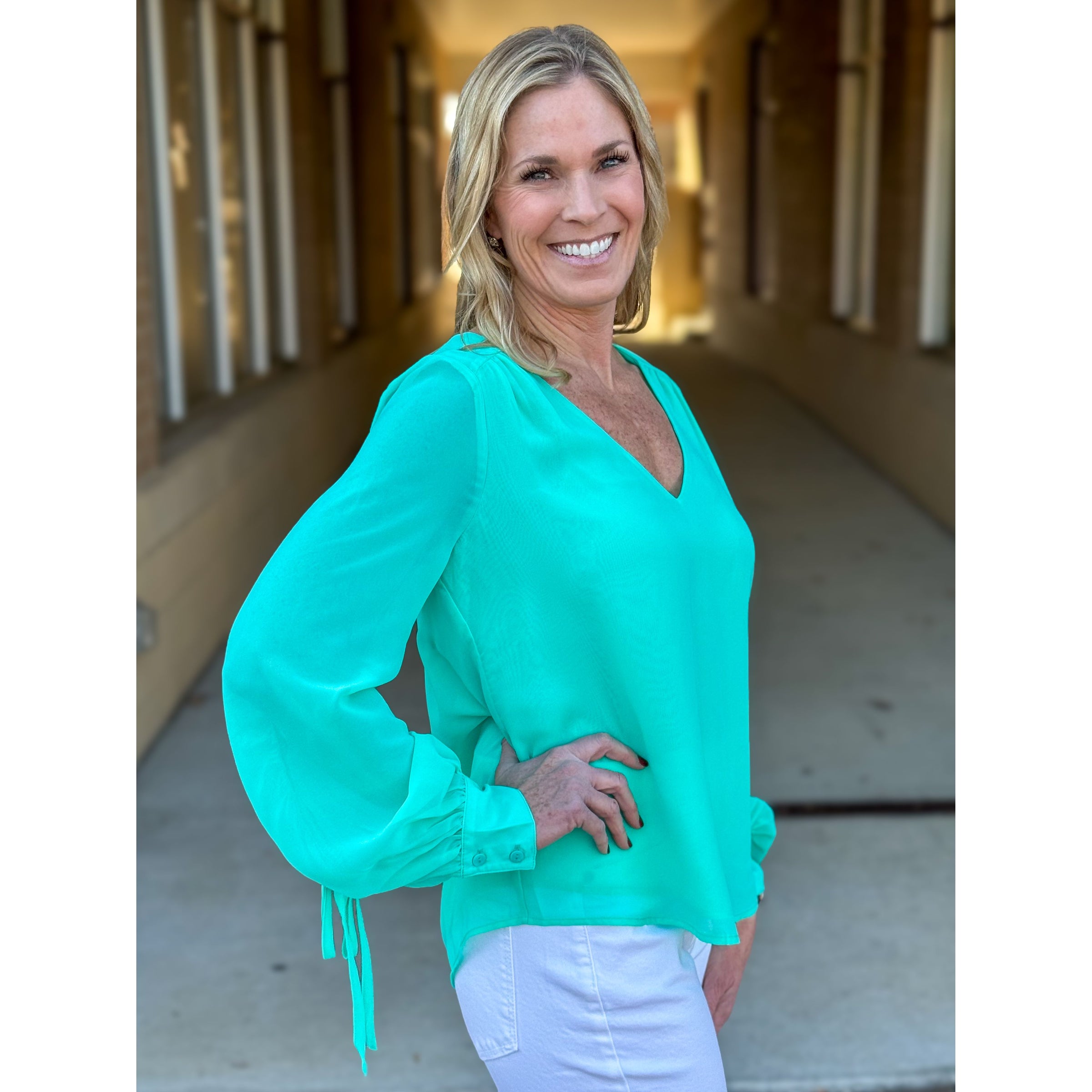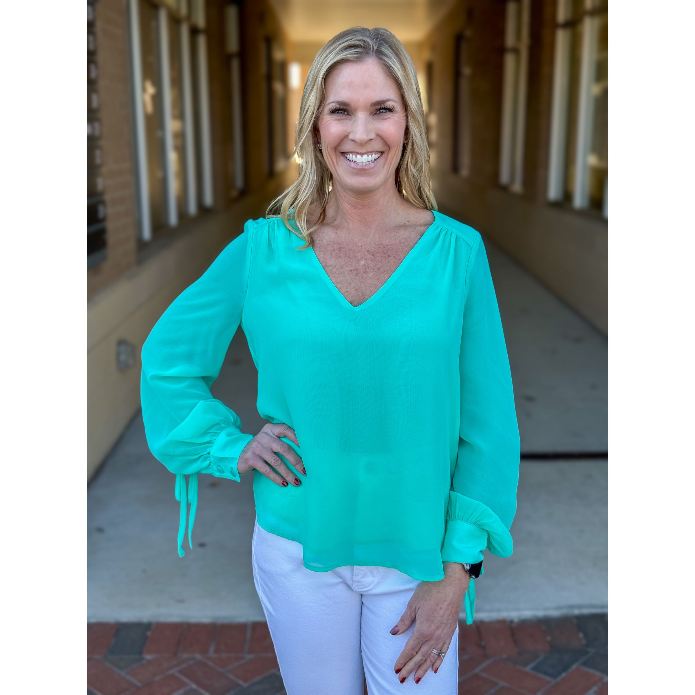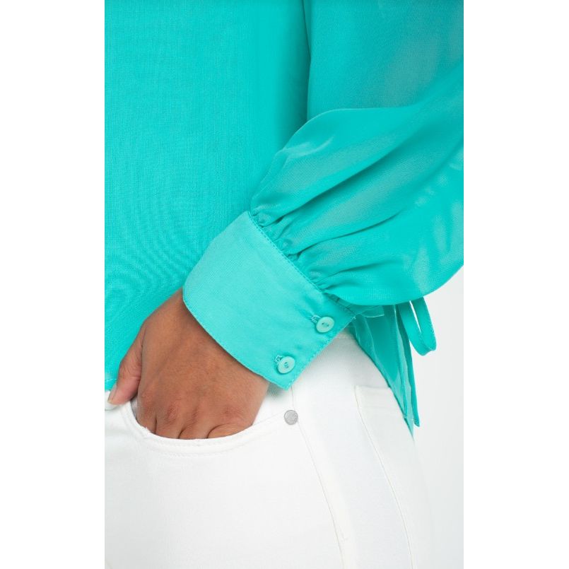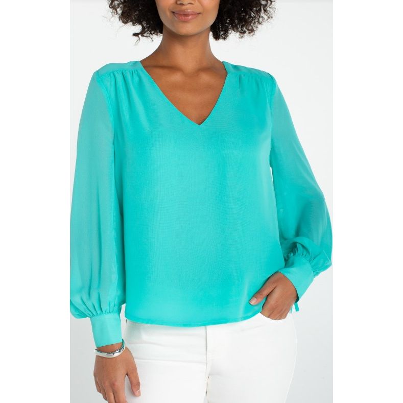 Liverpool Los Angeles Long Sleeve Woven Blouse with Sleeve Tie Detail - Waterfall Teal