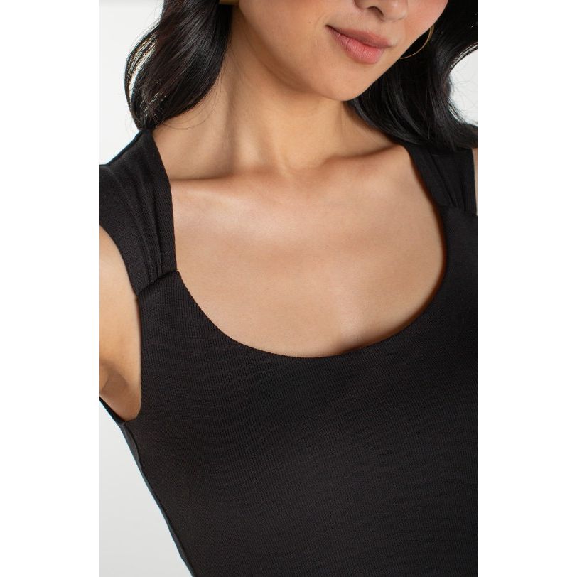 Made with elegant simplicity, this Liverpool Los Angeles sleeveless knit tank showcases a graceful scoop neckline and wide Ruched straps that create subtle dimension. Soft ribbed fabric molds to your frame for a polished, fitted silhouette that transitions effortlessly from day to evening.