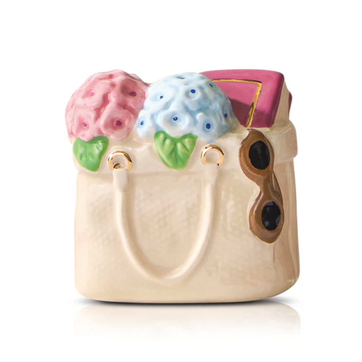 Sometimes the best treasures aren’t found online. They’re discovered in your favorite local shop, tucked between friendly smiles and the joy of shopping small. “tote-ally cute” is part of Nora's “back to brick” initiative, available exclusively in brick-and-mortar stores as a celebration of community and connection. inspired by carefree summer afternoons with fresh hydrangeas in hand, a good book, and your favorite pair of sunglasses, this hand-painted mini captures the beauty of slowing down and savoring the simple moments. a canvas tote overflowing with everyday essentials, it’s a gentle reminder that the most meaningful finds are often just around the corner.