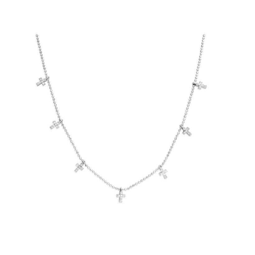 Stia Jewelry - Dazzling Dangles CZ Mini Cross Necklace - Sterling Silver
