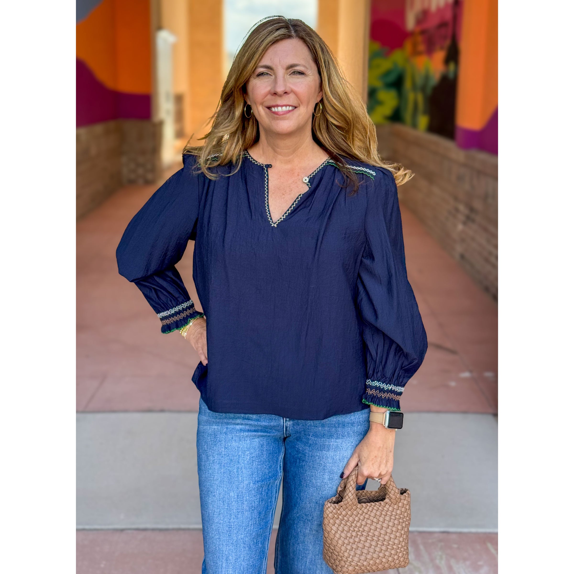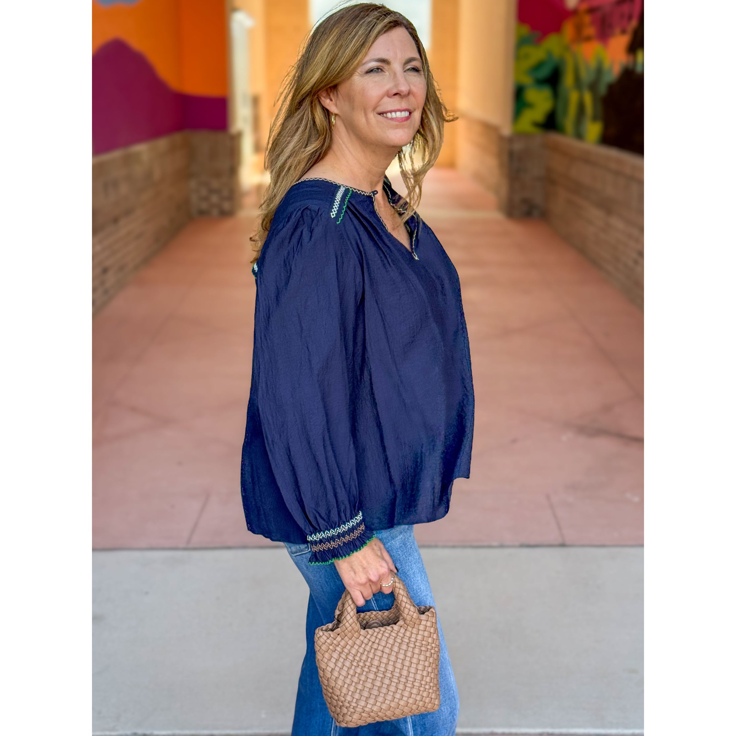 Alma Dainty Embroidered Top - Navy
