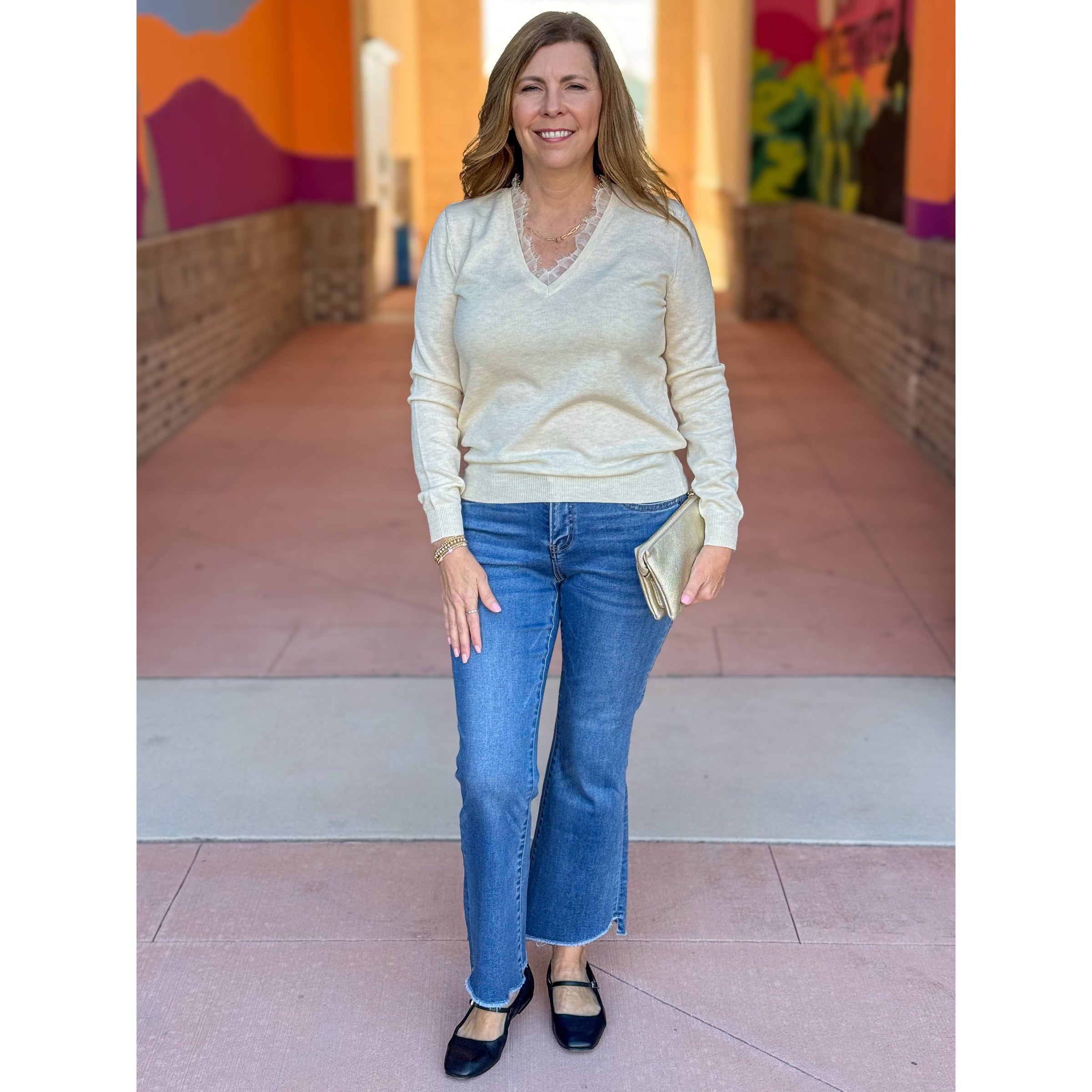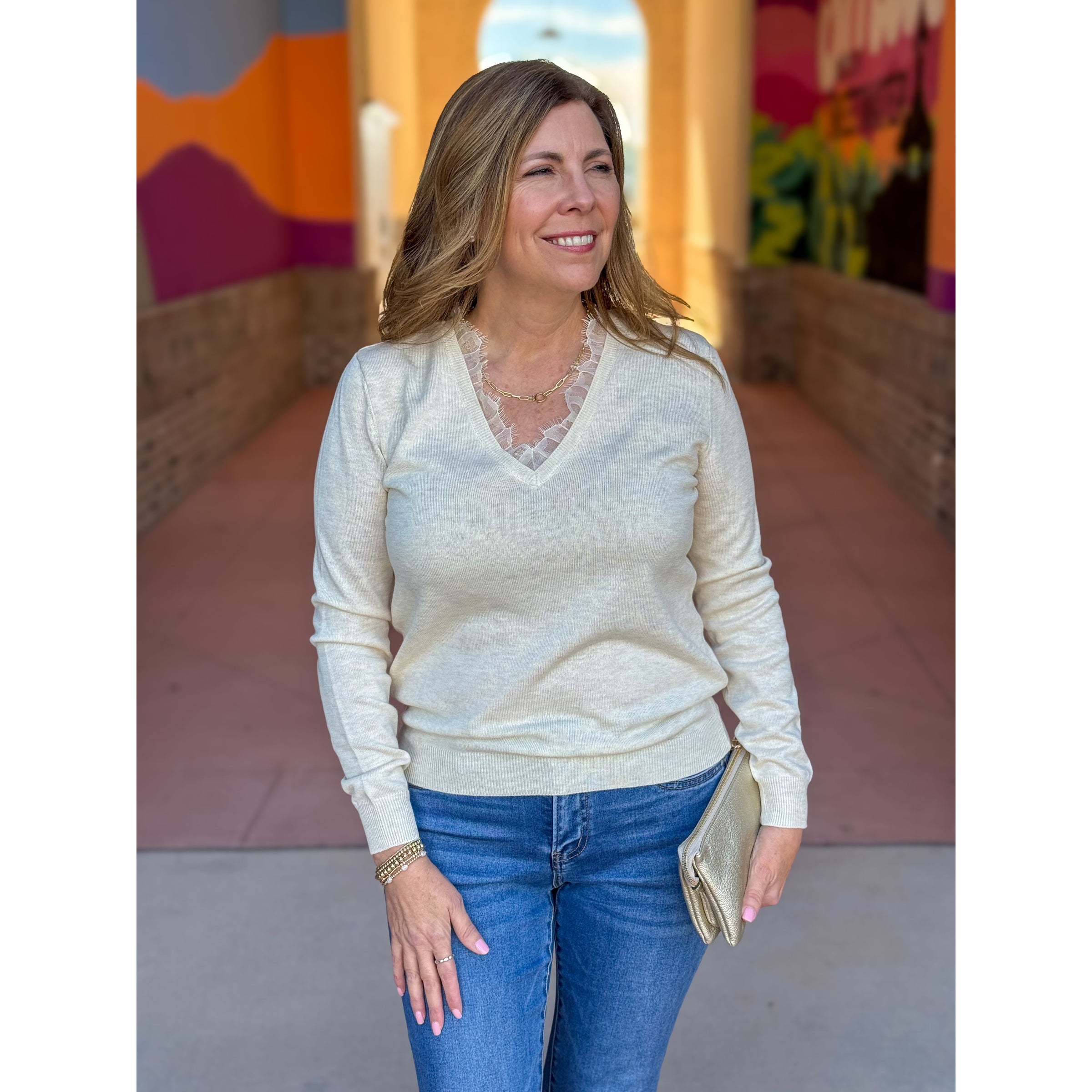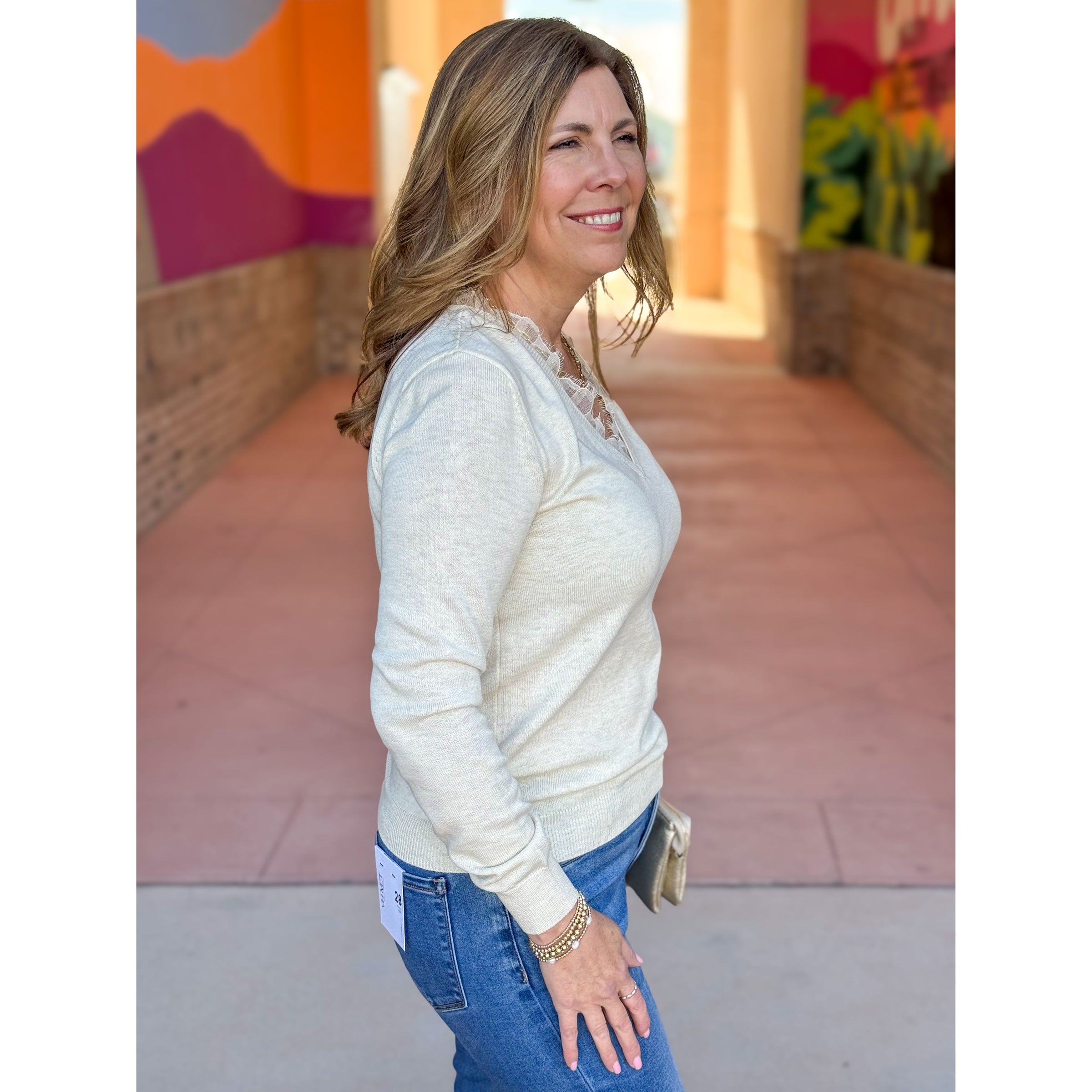 Callie Long Sleeve Lace Trim Sweater - Ivory