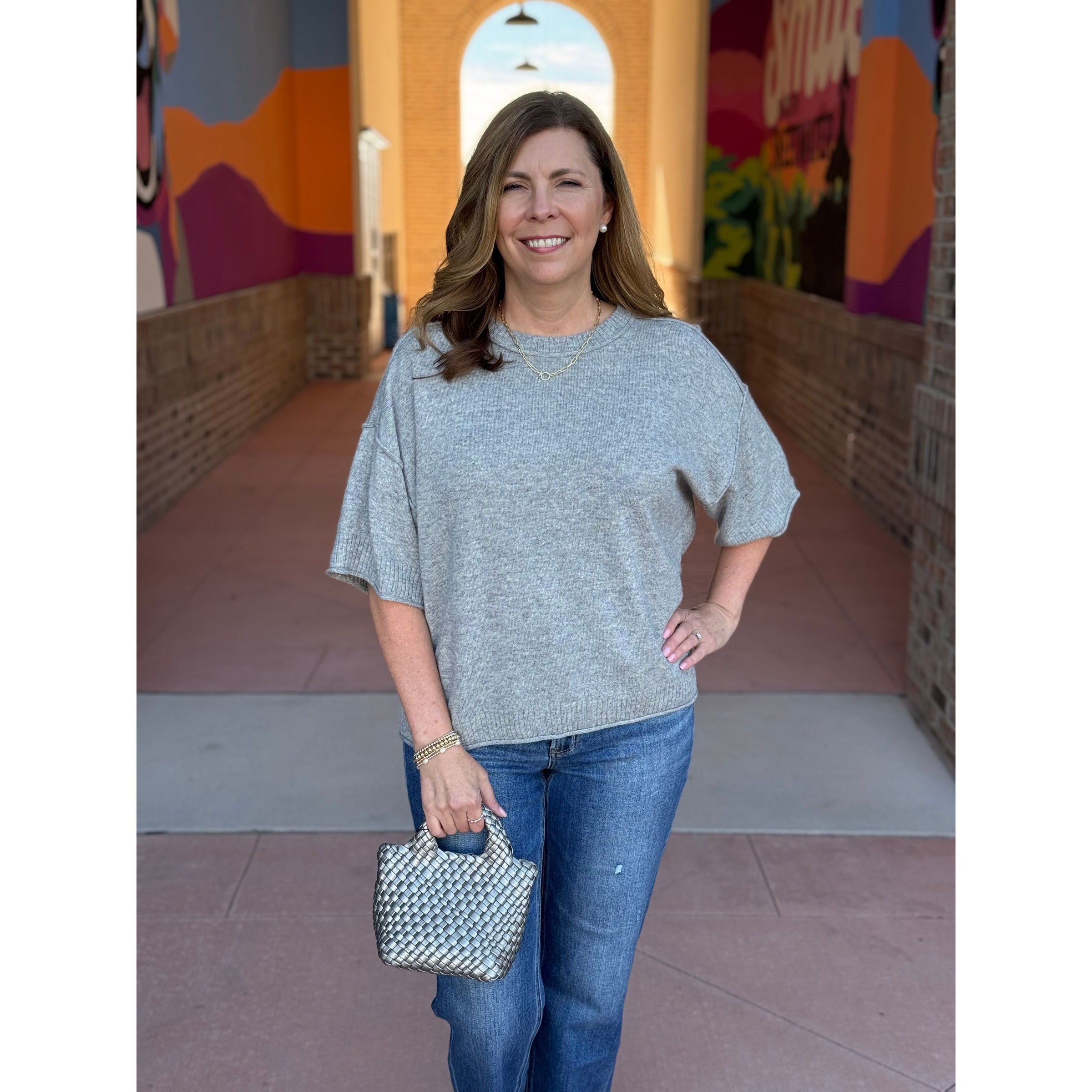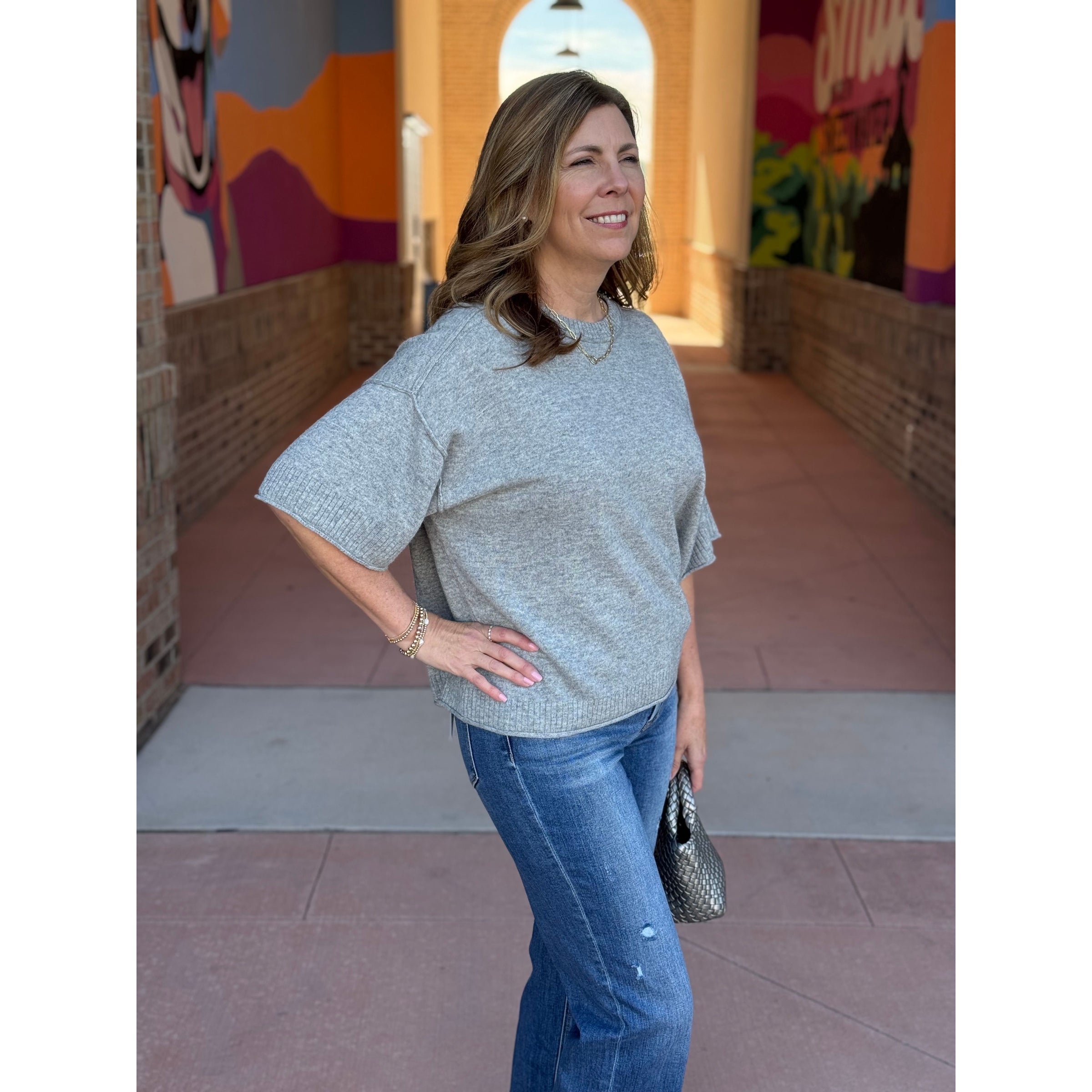 Carmen Drop Shoulder Short Sleeve Cashmere Blend Sweater - Heather Grey