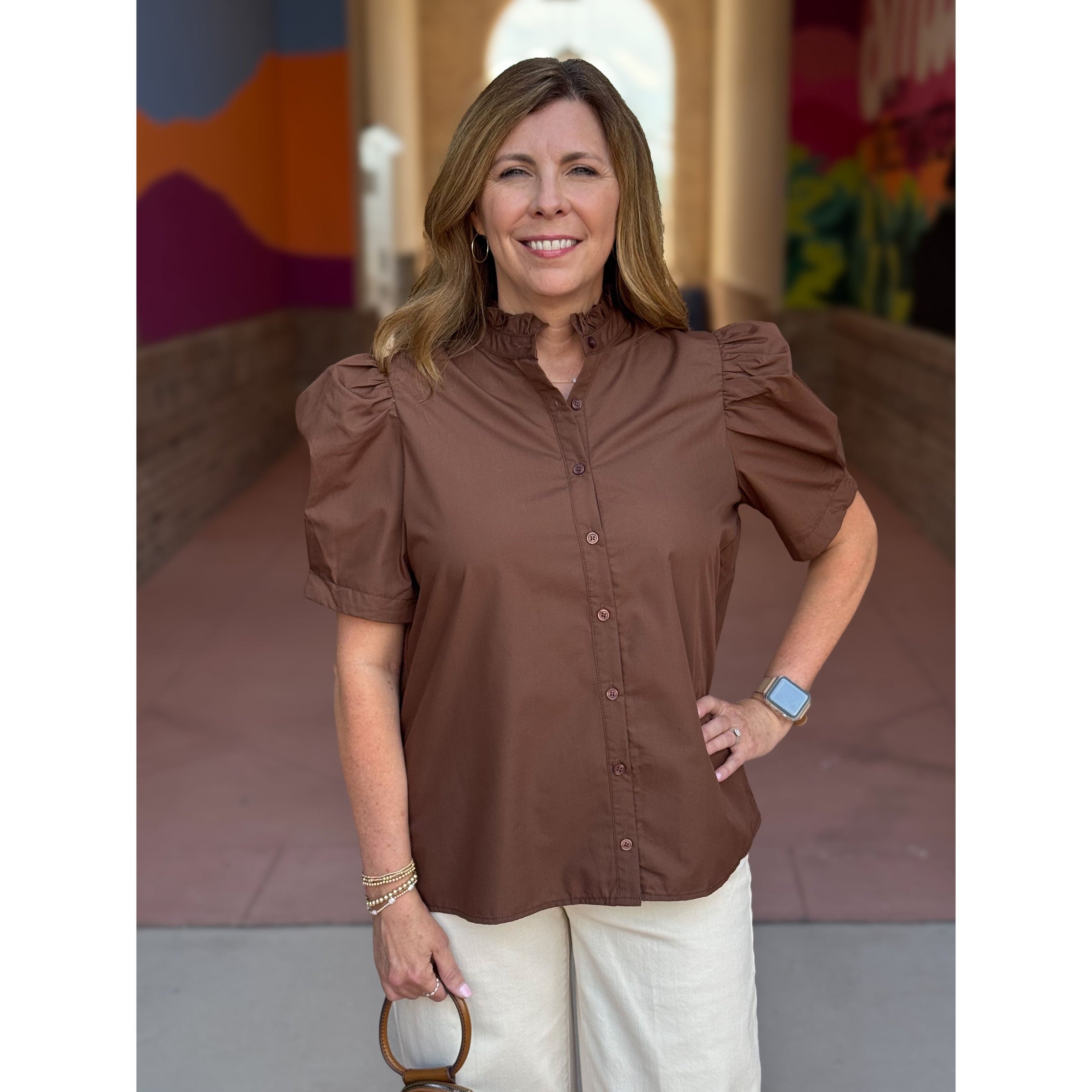 Charley Puff Shoulder Short Sleeve Blouse - Brown
