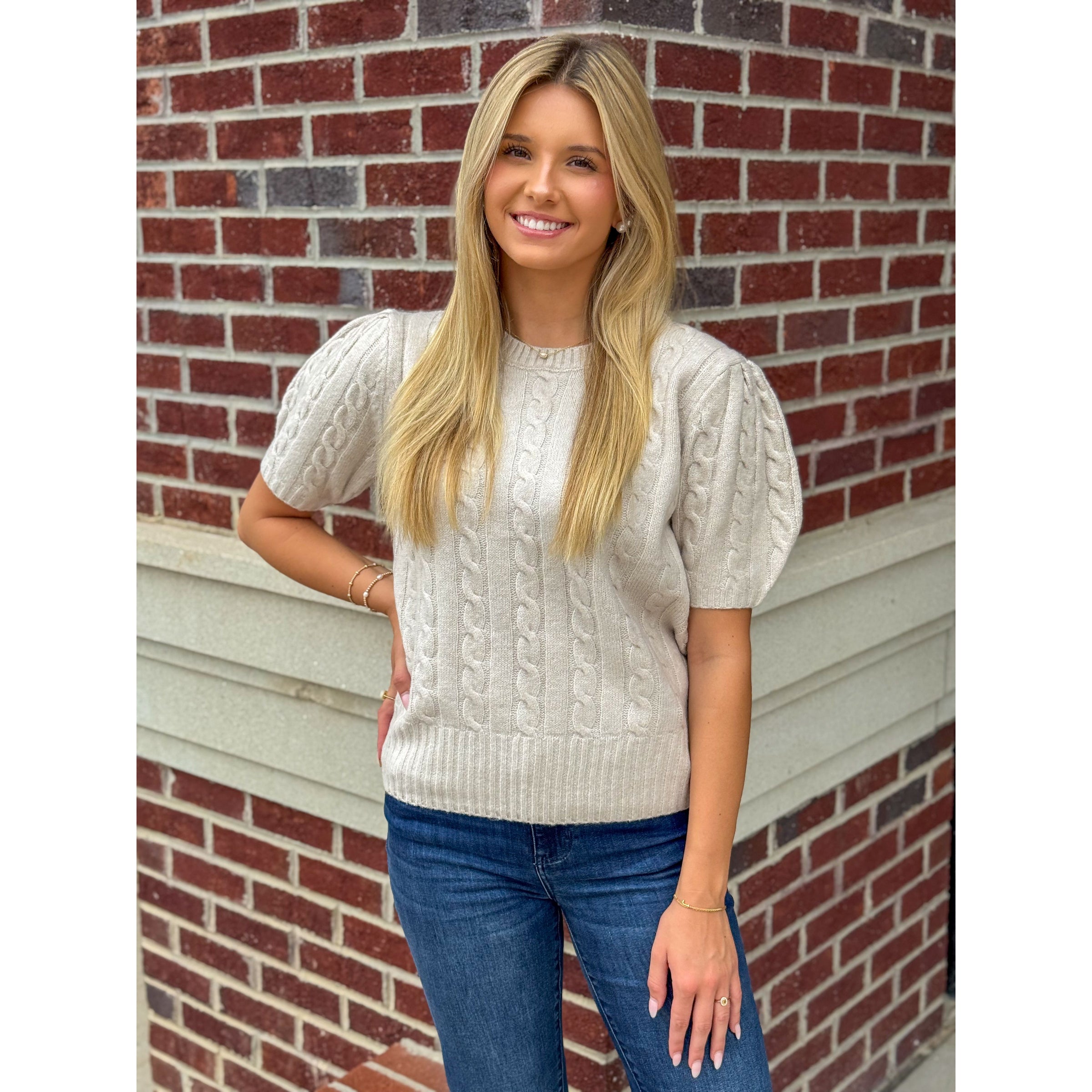 Christine Short Sleeve Cable Knit Sweater Top - Pearl
