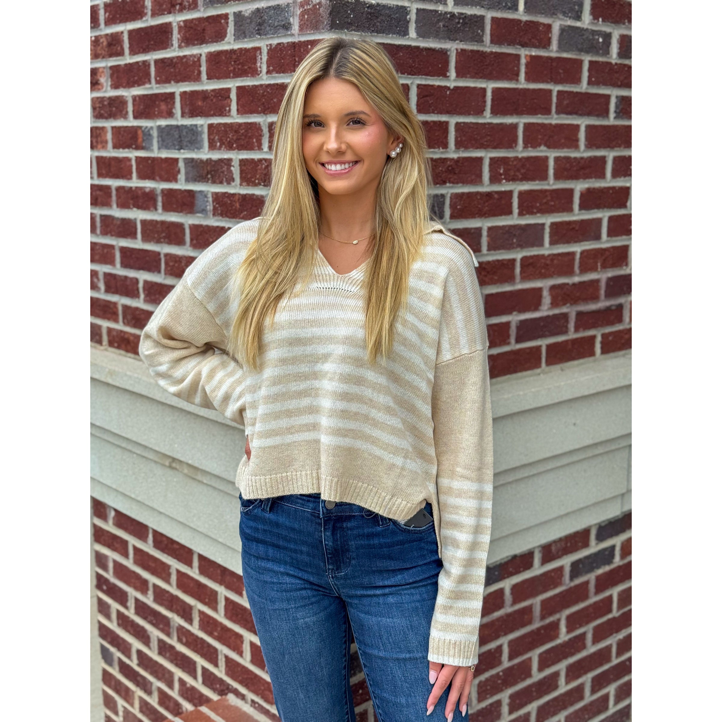 Elise Striped Shoulder Knit Sweater - Oatmeal