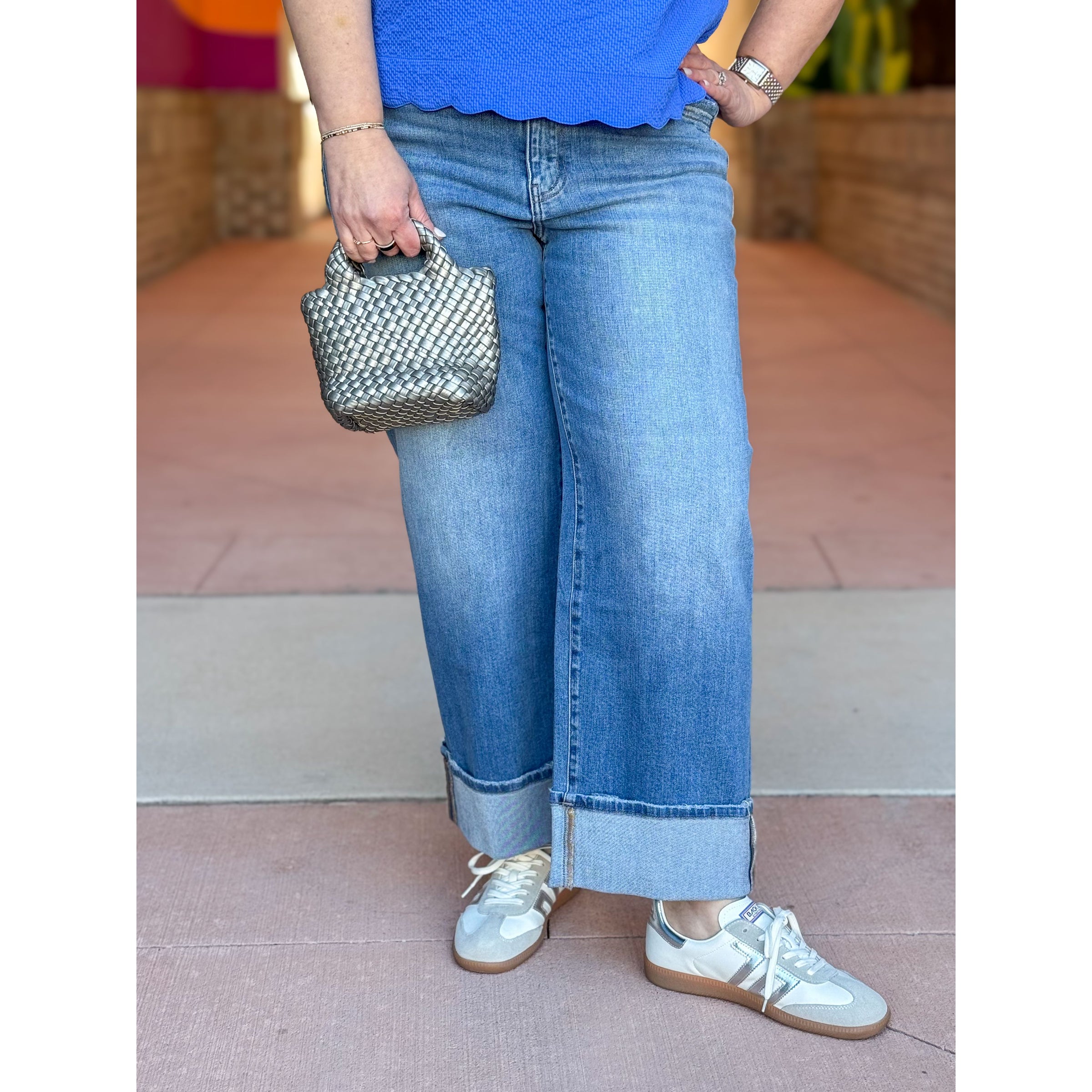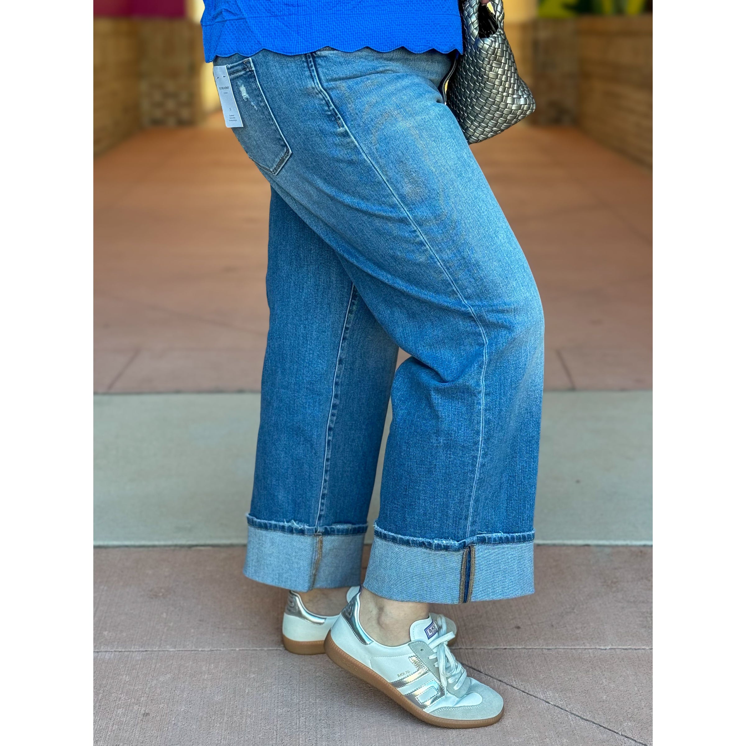 Flying Monkey High Rise Cuffed Wide Leg Jeans - Moorland