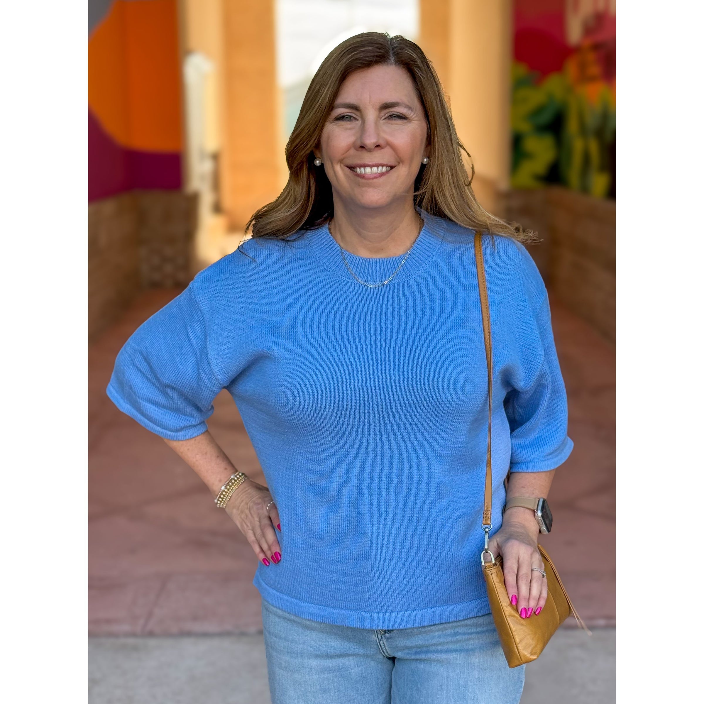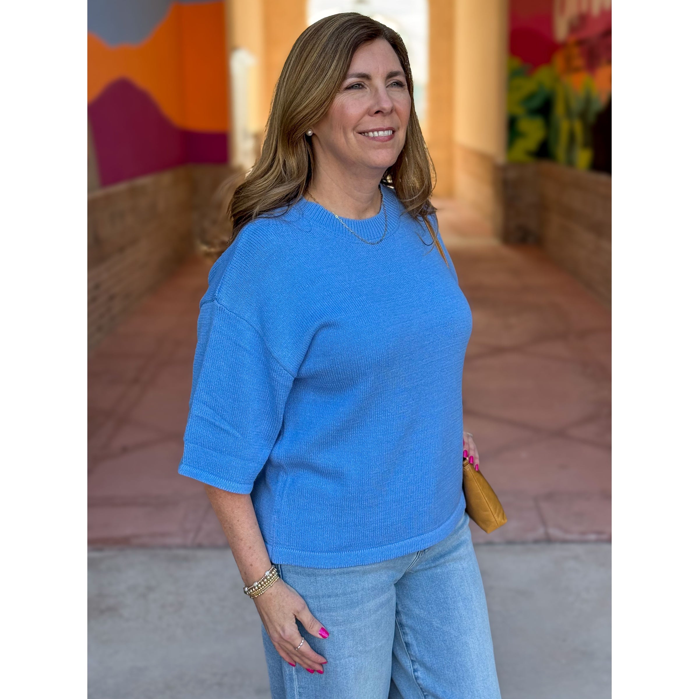 Jessica Relaxed 3/4 Sleeve Knit Top - Chambray