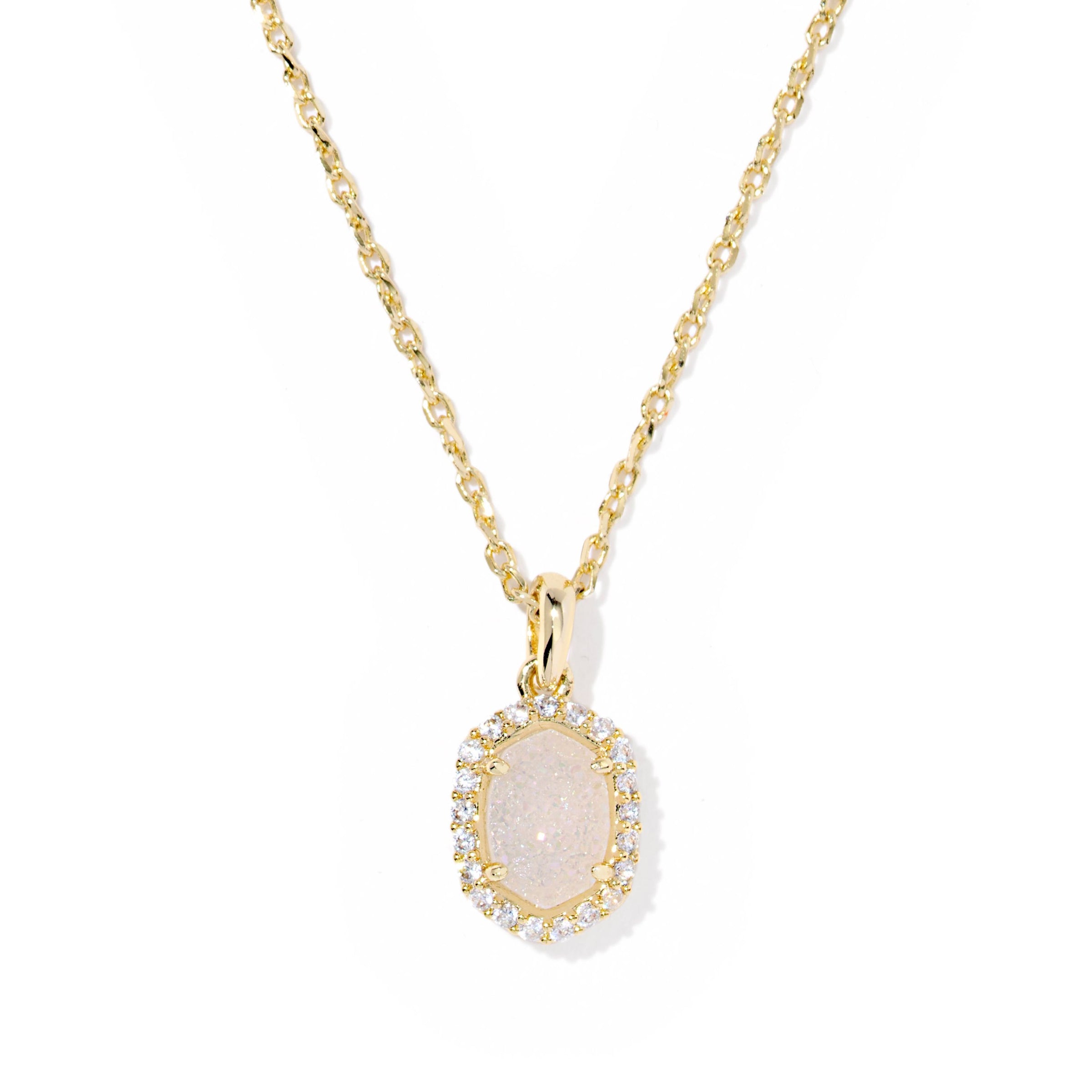 KENDRA SCOTT DAPHNE CRYSTAL FRAME SHORT PENDANT NECKLACE GOLD IRIDESCENT DRUSY