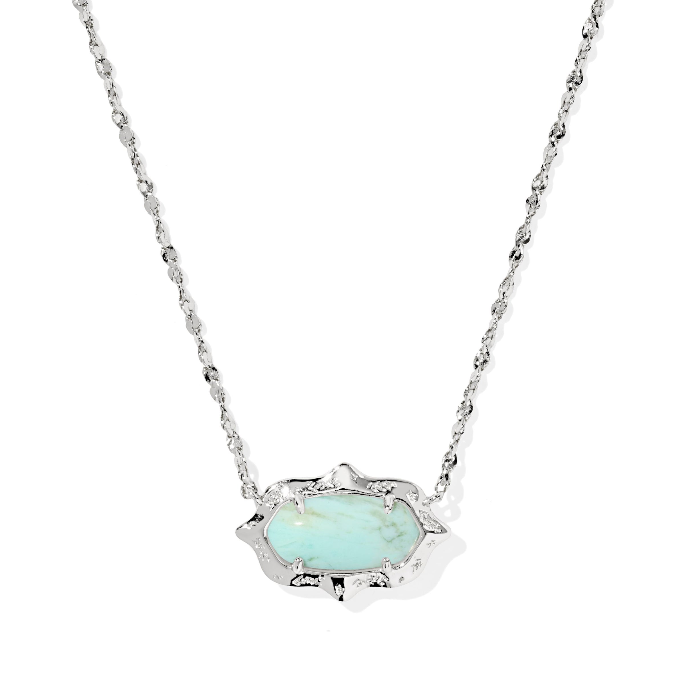 KENDRA SCOTT ELISA SCALLOP FRAME SHORT PENDANT NECKLACE SILVER SEA GREEN CHRYSOCOLLA