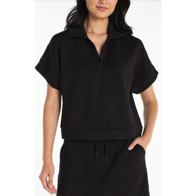Liverpool Los Angeles Half Zip Popover Top - Black