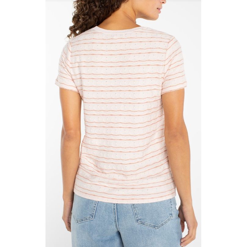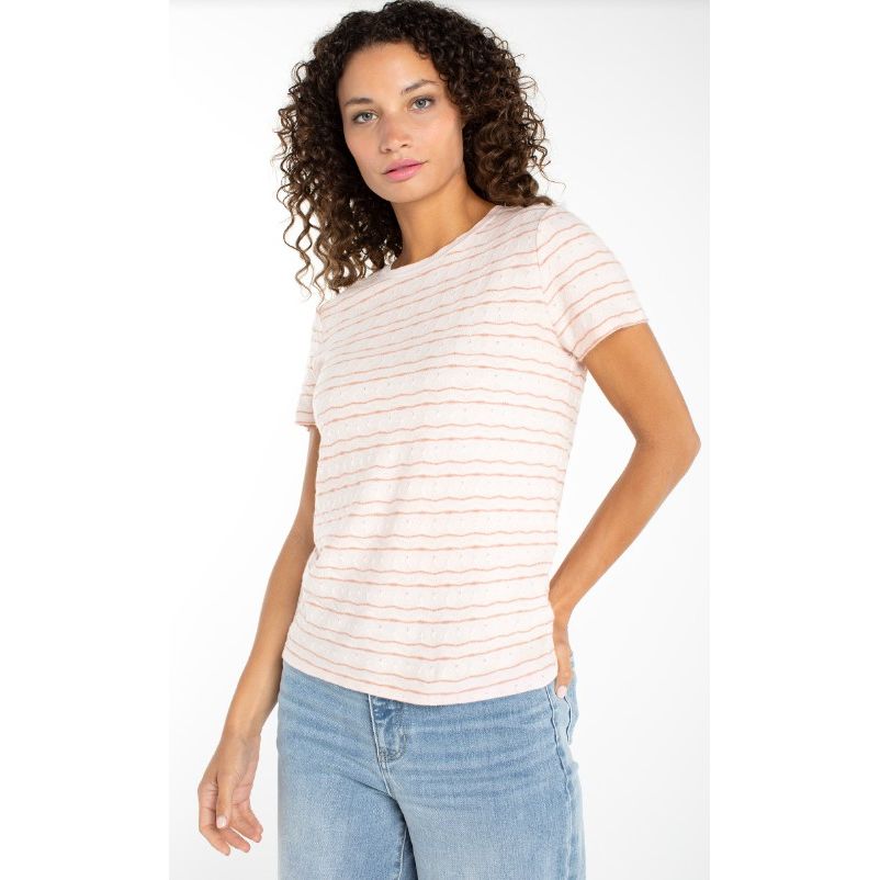Liverpool Los Angeles Short Sleeve Crew Neck Knit Tee With Rib Trim - Pink Wavy Stripe
