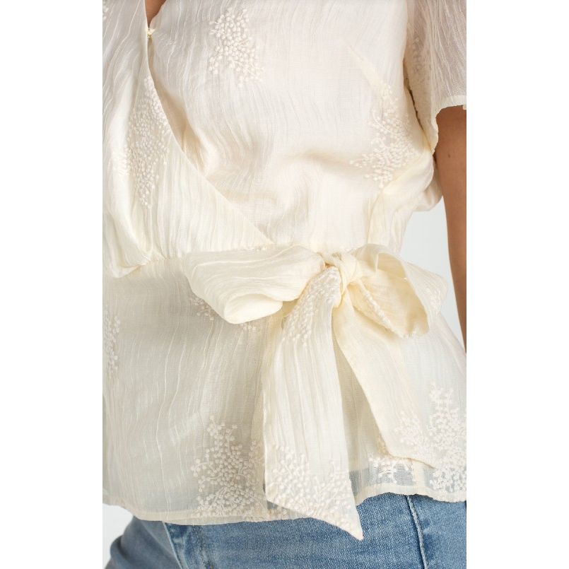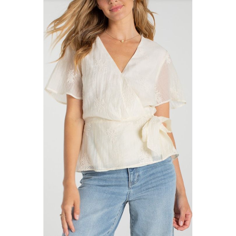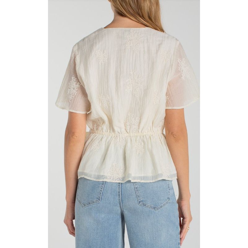 Liverpool Los Angeles Short Sleeve Wrap Front Woven Top With Tie - Cream