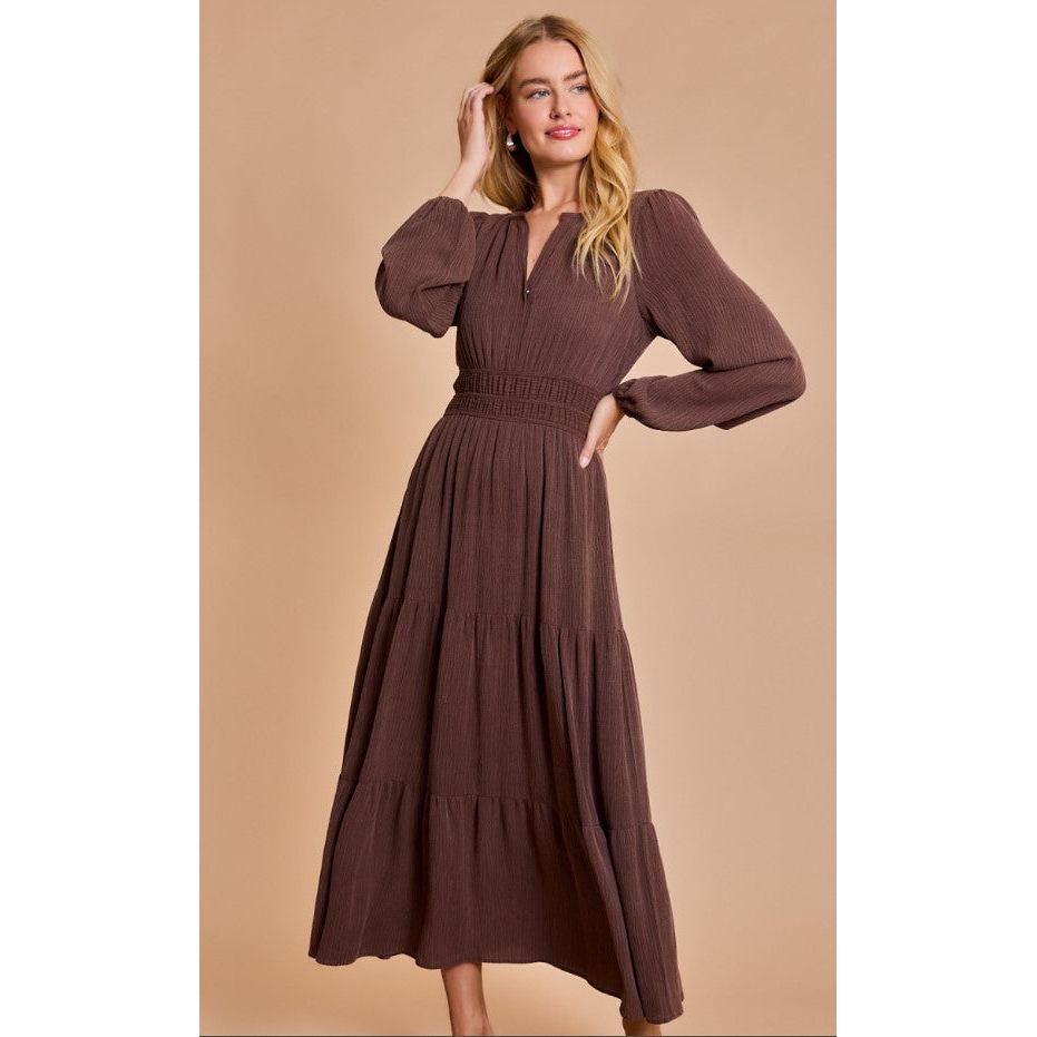 Sharon Long Sleeve Maxi Dress - Chocolate