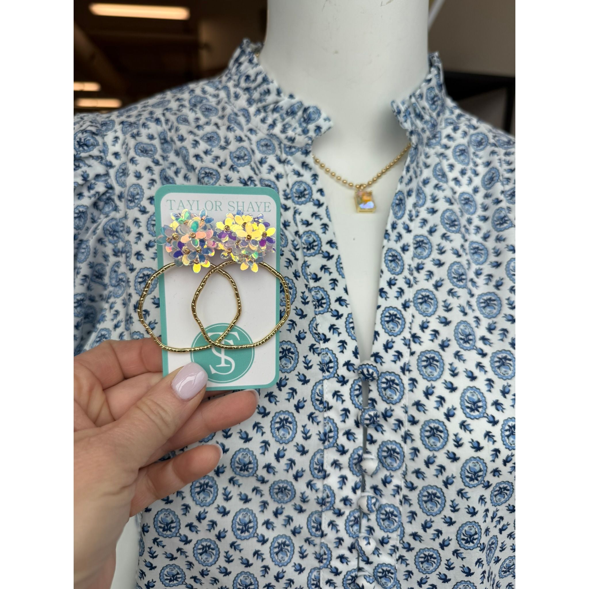 Taylor Shaye Iridescent Flower Hoops - Iridescent/Round