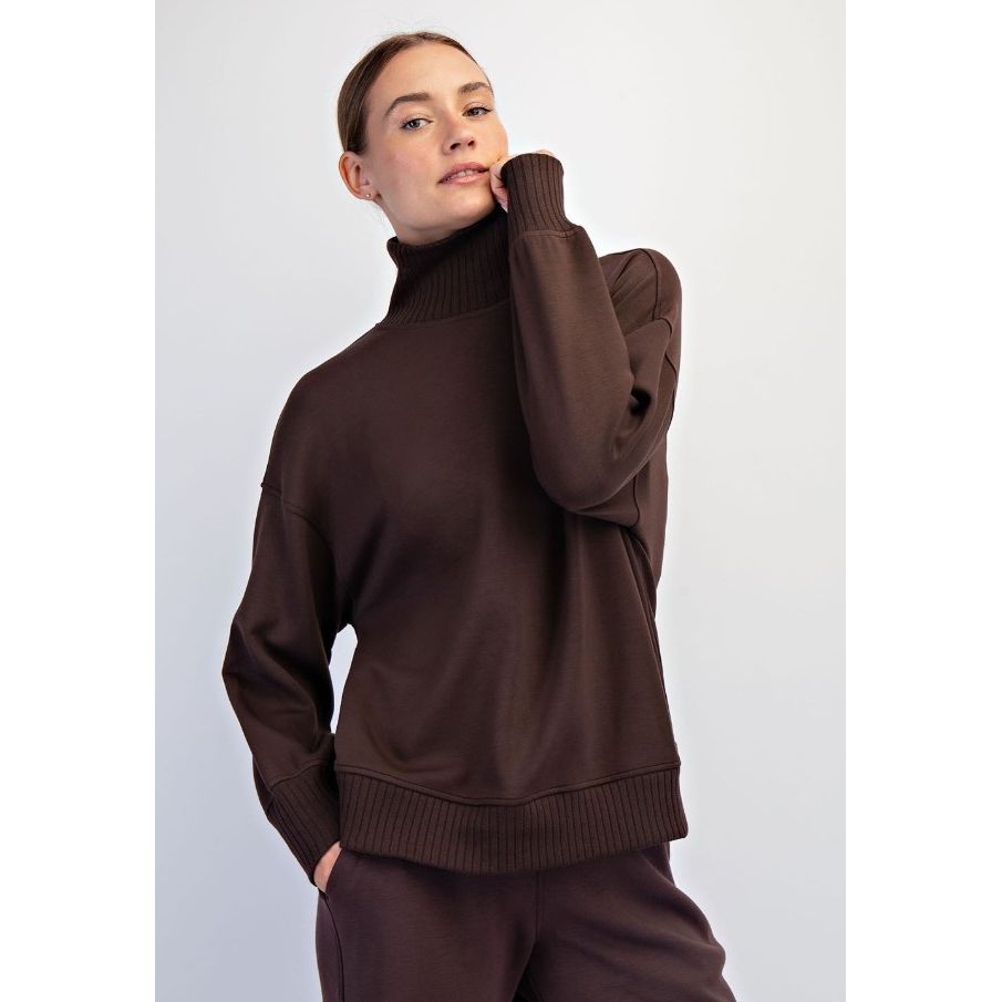 Valerie Modal Scuba Ribbed Mock Neck Pullover - Espresso